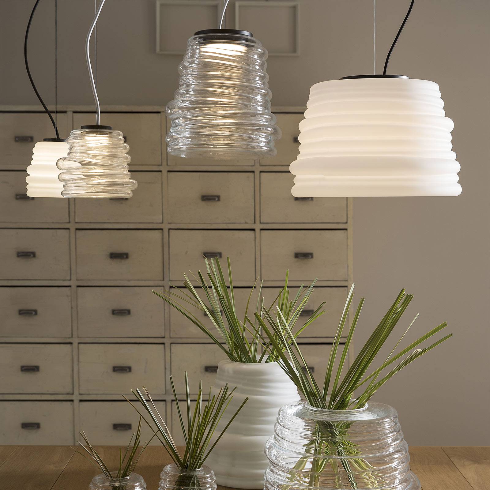 Karman Bibendum LED závěsné světlo, Ø 15 cm, čirá, Obývací pokoj / jídelna, sklo, kov, 8W, K: 18cm