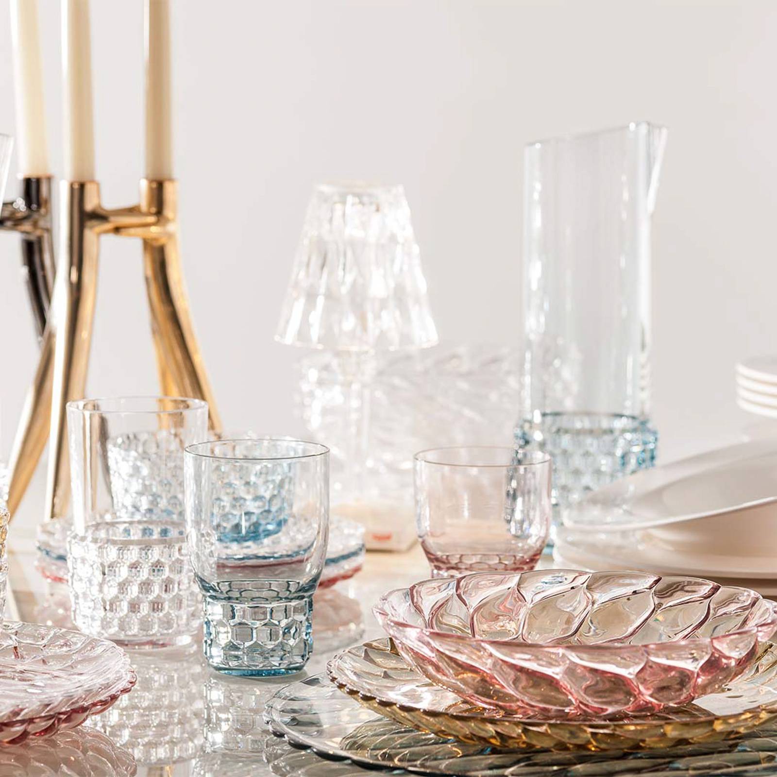 Kartell Big Battery stolní lampa IP54, průhledná, PMMA, 3W, P: 17 cm, L: 17 cm, K: 37.3cm