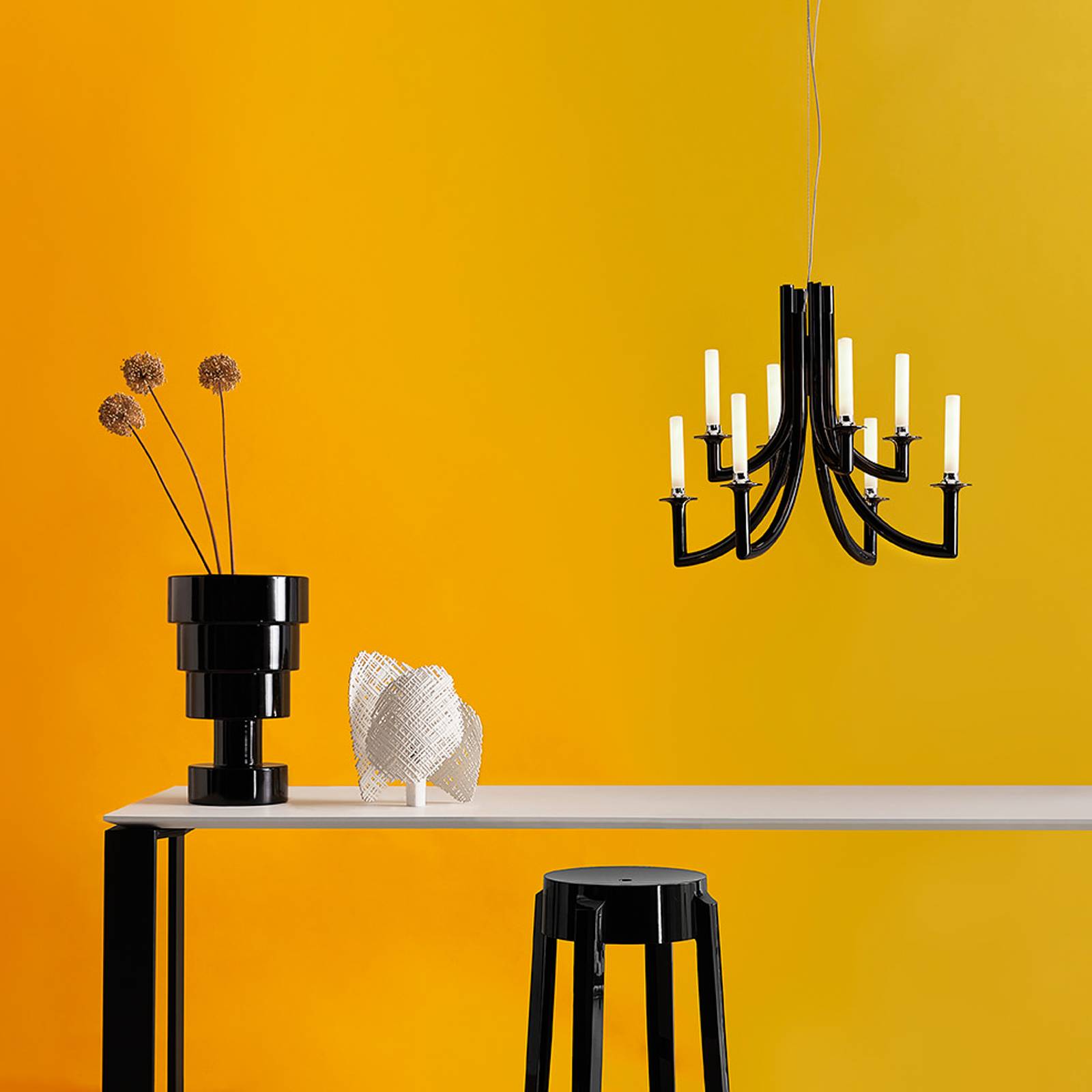 Kartell Khan lustr, Ø 77 cm černá, Obývací pokoj / jídelna, Polykarbonát z obnovitelných průhledných surovin, E14, 5W, K: 61cm