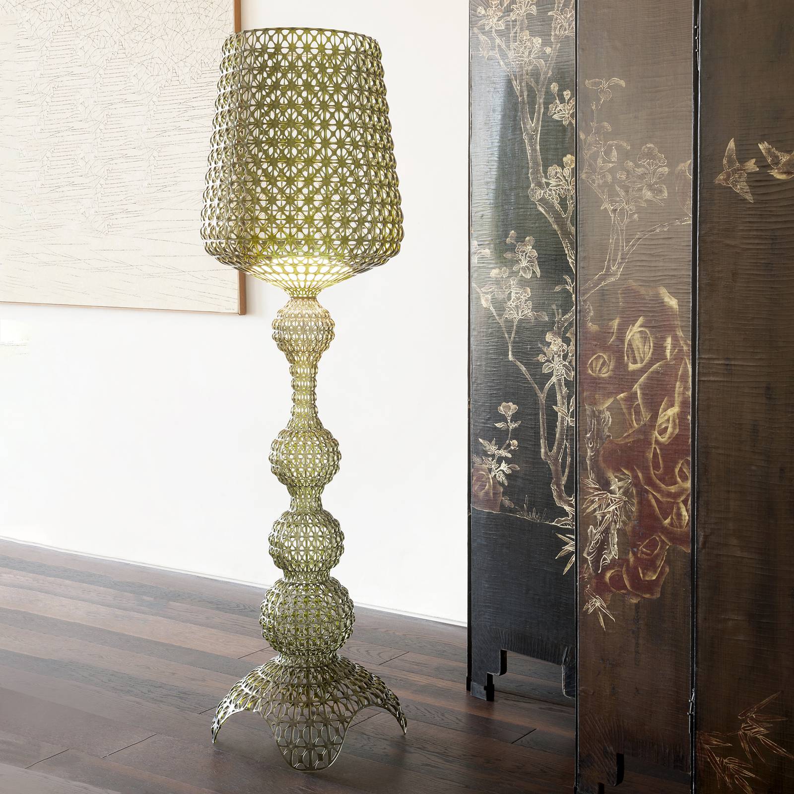 Kartell Kabuki – LED stojací lampa, zelená, Obývací pokoj / jídelna, termoplastický technopolymer, 26W, K: 166cm