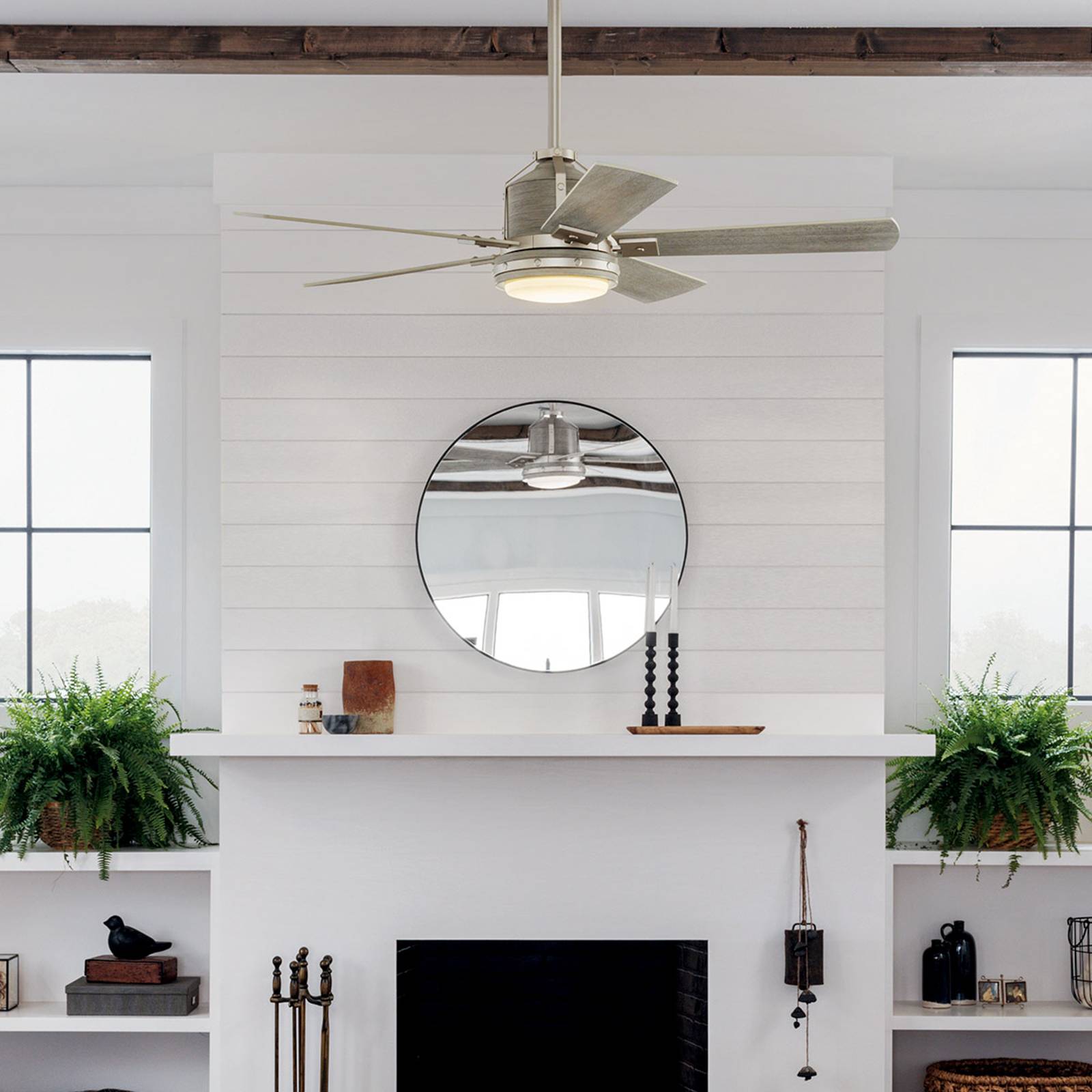 KICHLER Stropní ventilátor Colerne 52 LED, nikl/bílý ořech, Obývací pokoj / jídelna, Ocel, dřevo, 10W, K: 43cm