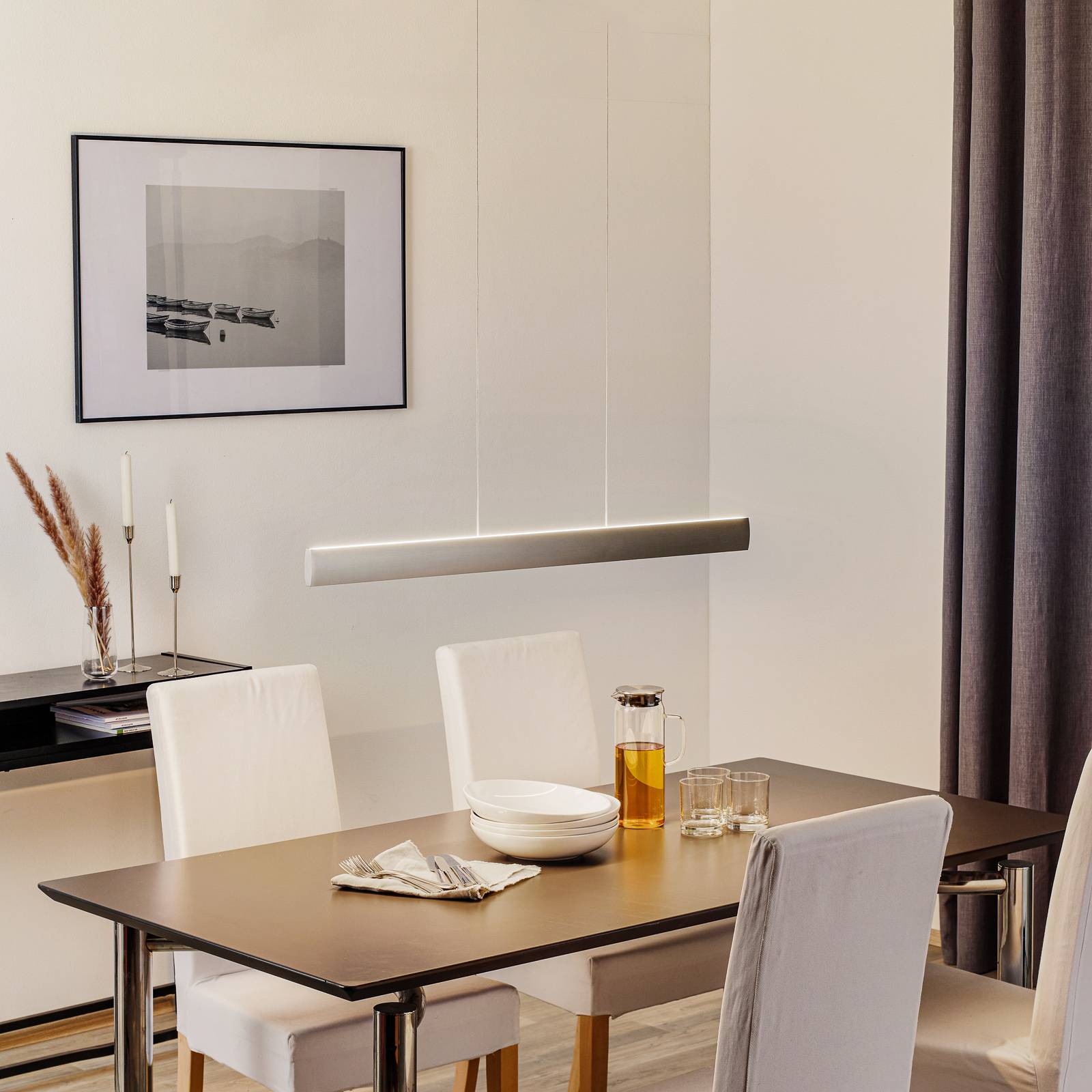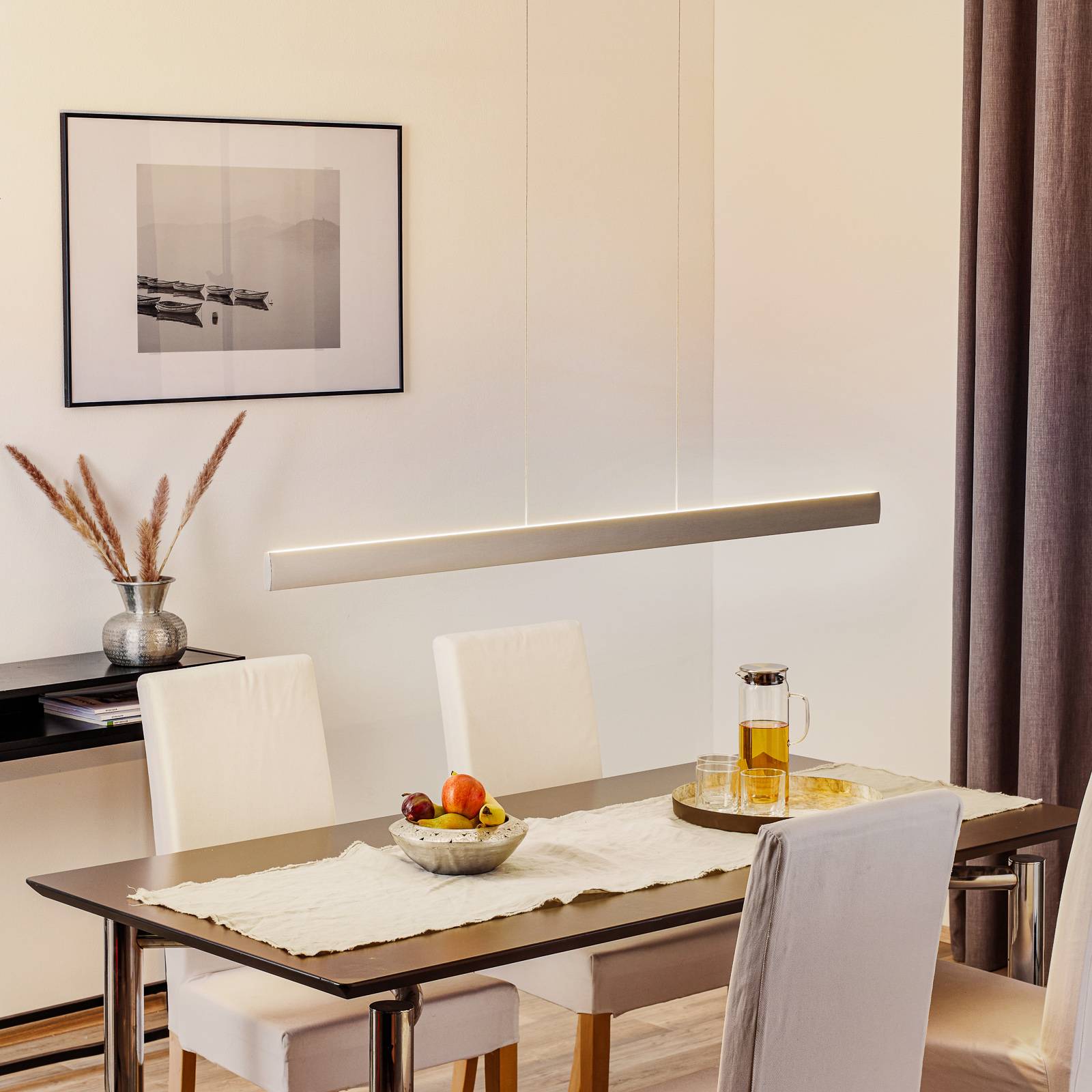 Knapstein LED závěsné světlo Runa, nikl, délka 132 cm, Obývací pokoj / jídelna, kov, 62W, P: 132 cm