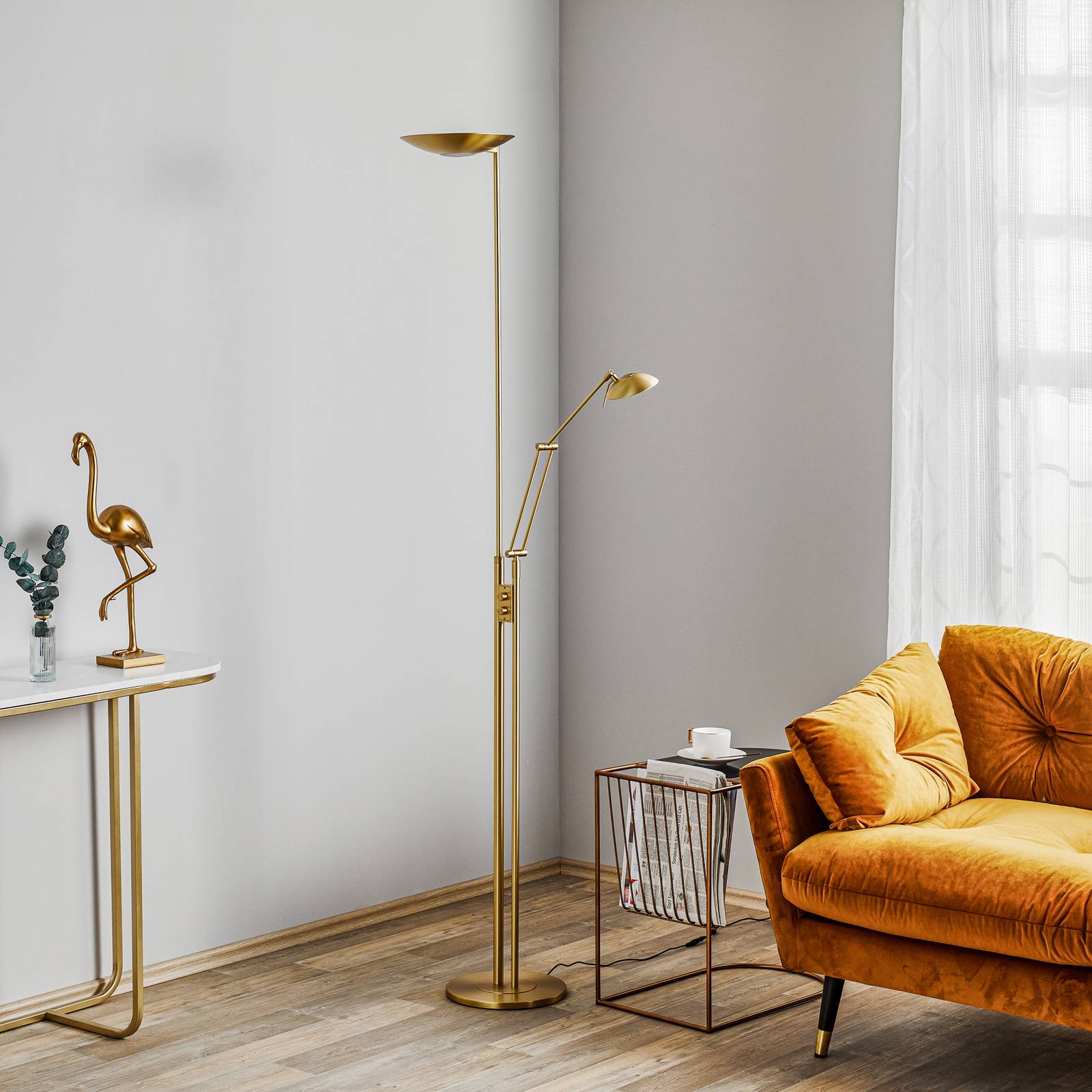 Knapstein LED stojací lampa Jona, čtecí rameno, mosaz matná, Obývací pokoj / jídelna, kov, 38.5W, K: 185cm