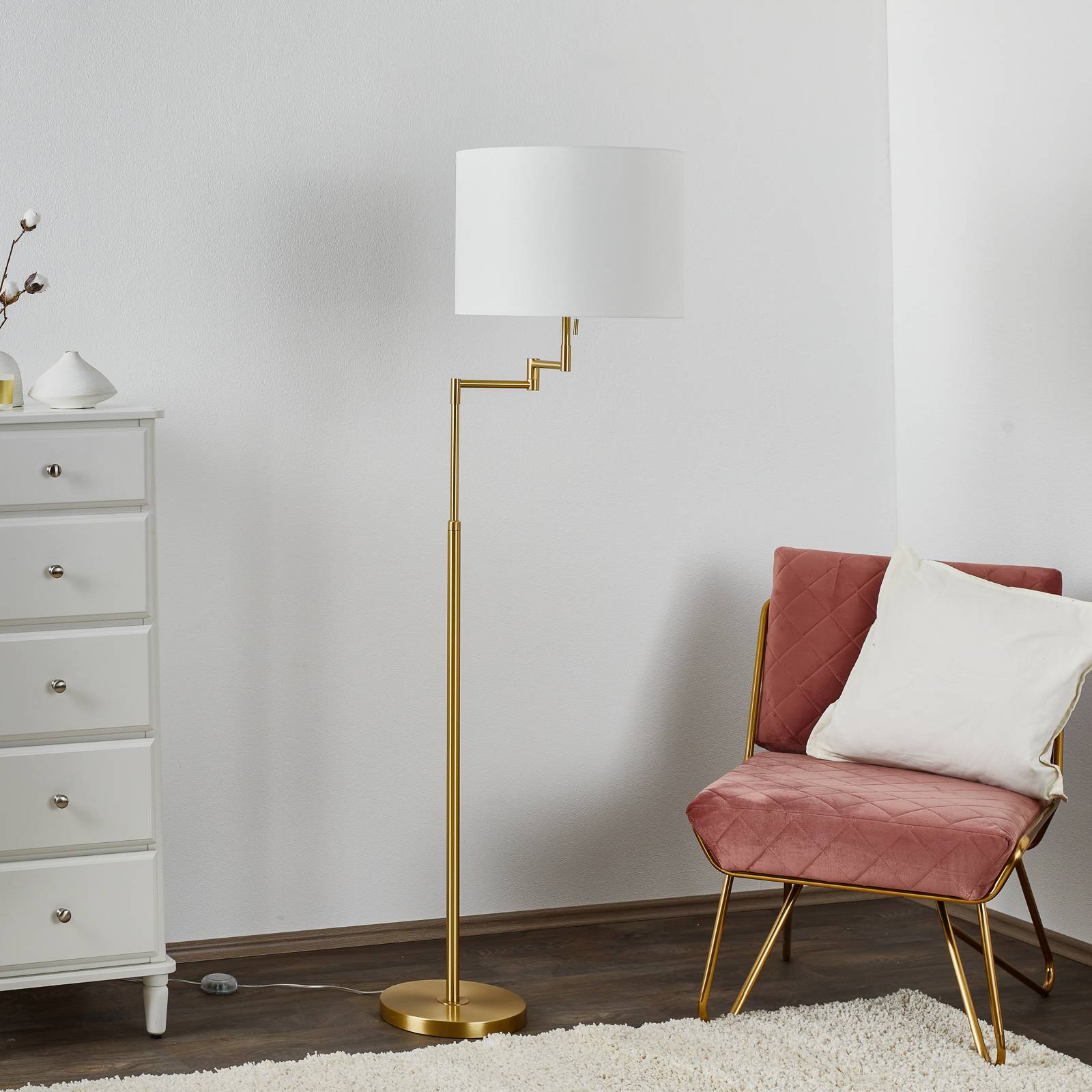 Knapstein Stojací lampa Alva bronz stínidlo bílá stmívatelná, Obývací pokoj / jídelna, kov, chintz, E27, 40W, K: 149cm