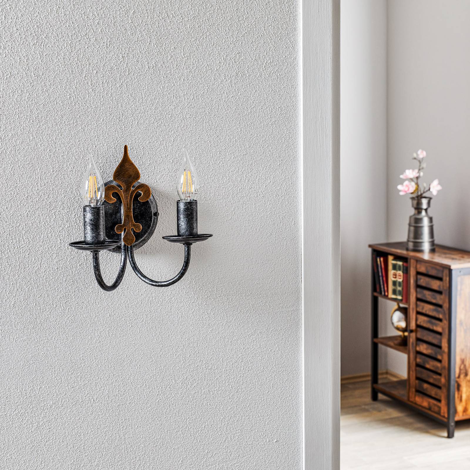 Kögl Nástěnné světlo CASTELLO 2zdrojové, Obývací pokoj / jídelna, kov, E14, 40W, L: 20 cm, K: 20cm