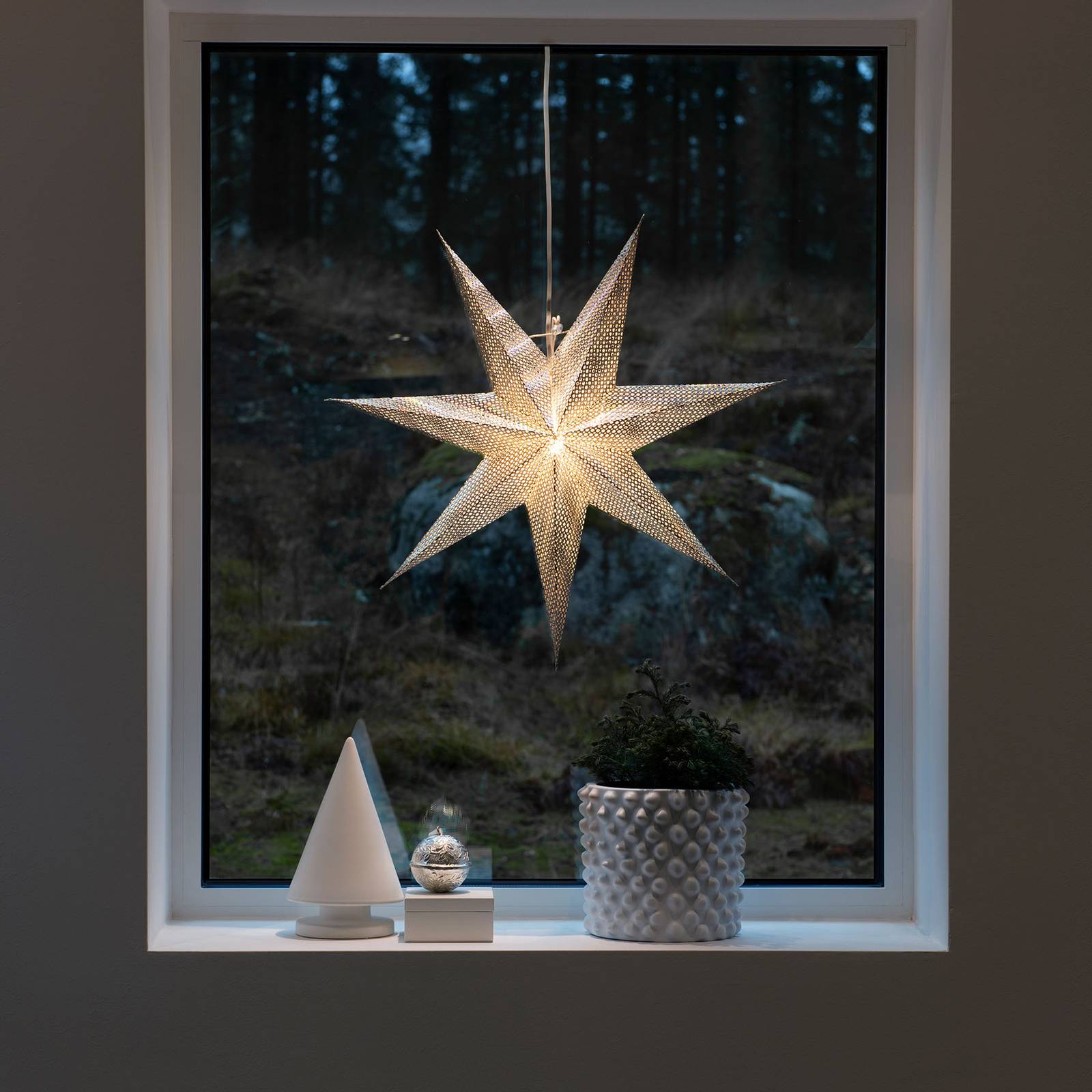 Konstsmide Christmas Dekorativní hvězda z papíru, stříbrná, 7cípá, papír, E14, 25W