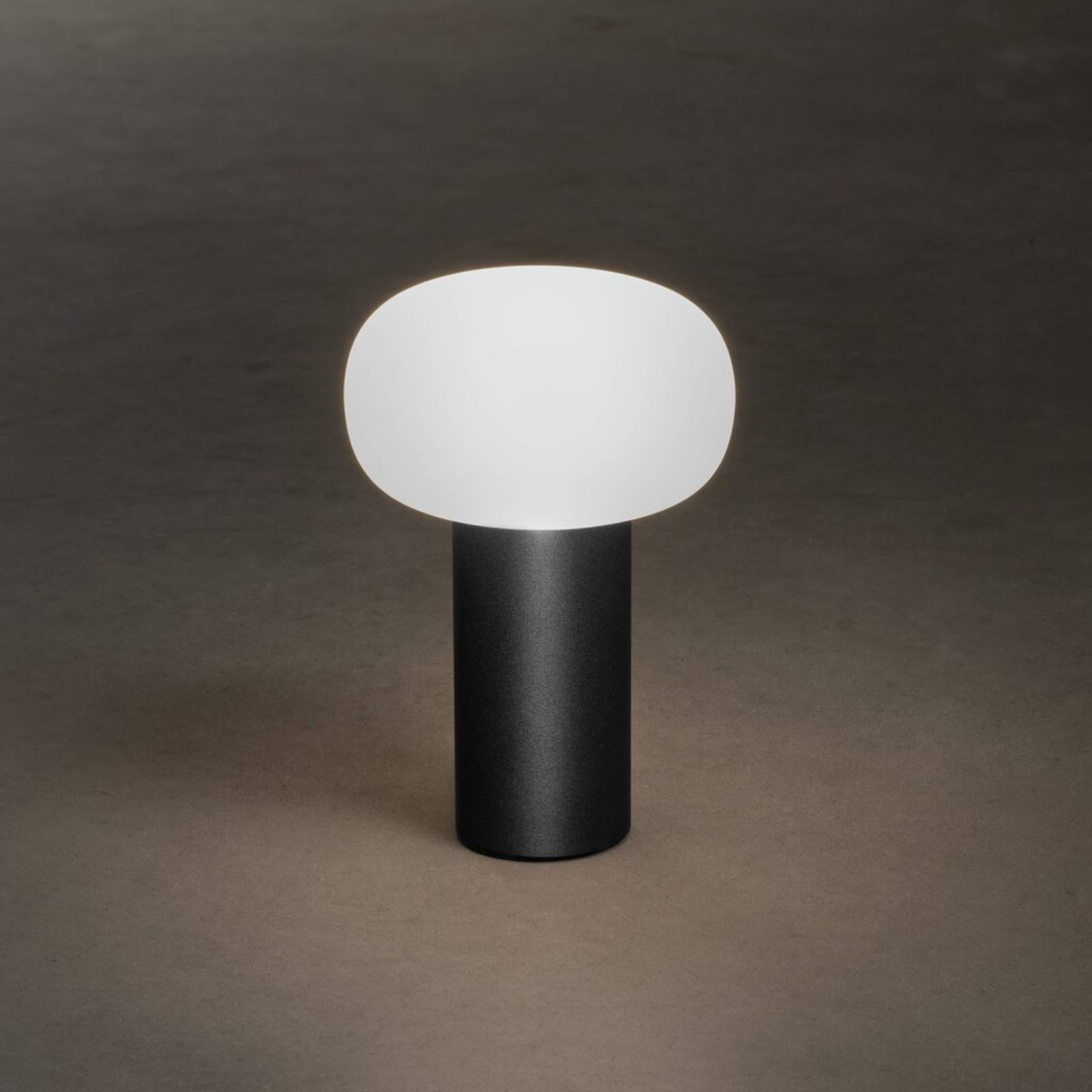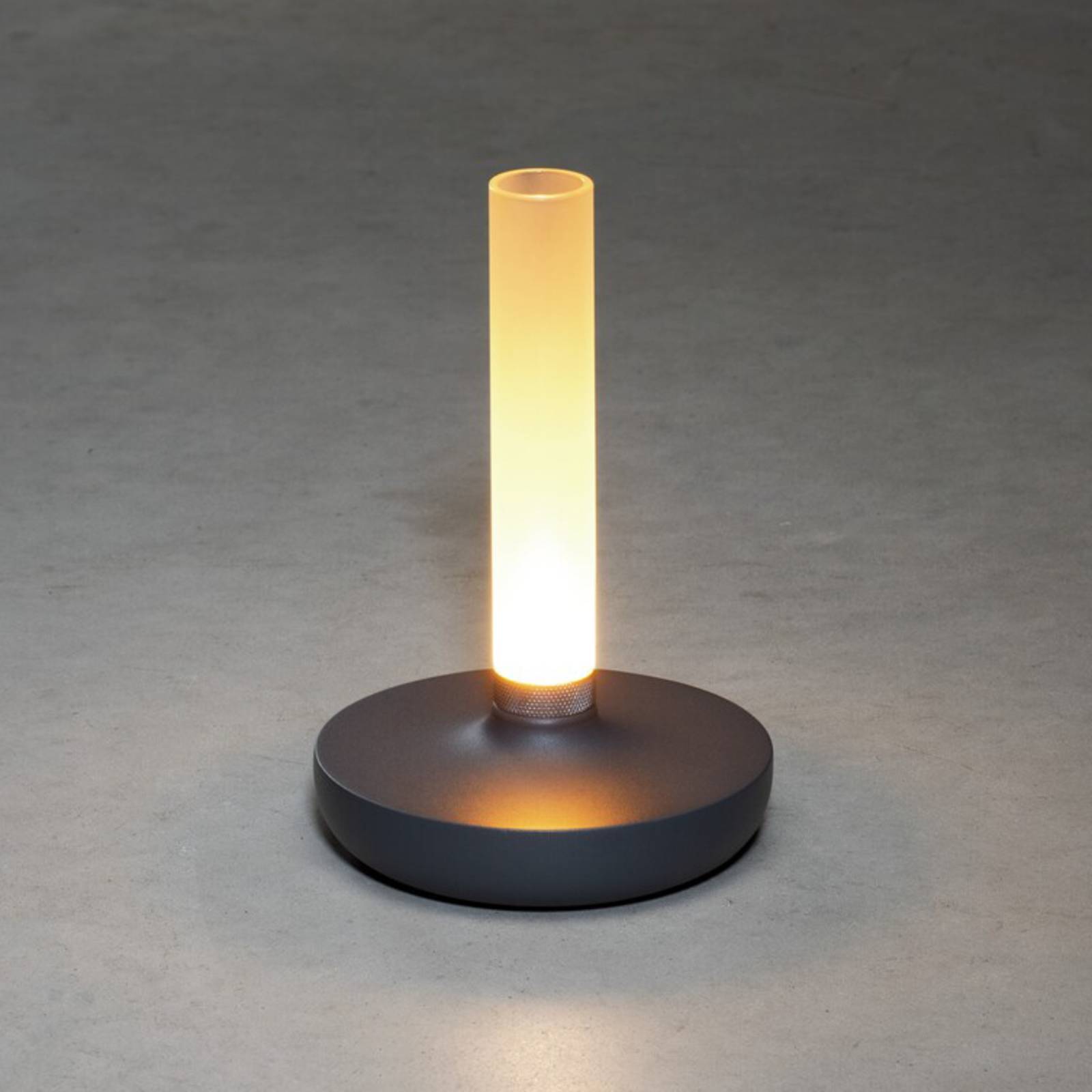 Konstsmide LED stolní lampa Biarritz, IP54 baterie CCT, šedá, hliník, sklo, 2.5W, K: 20.5cm