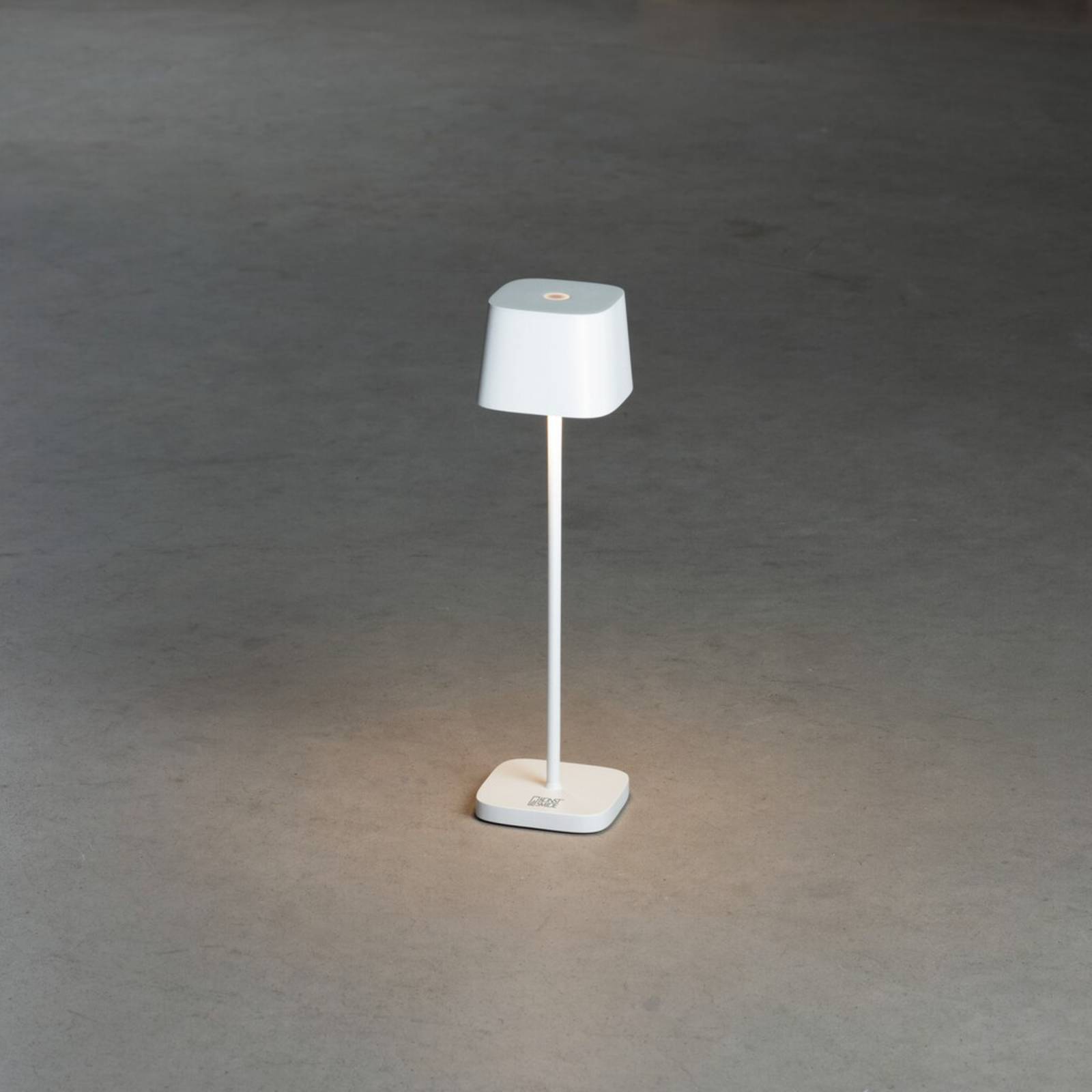 Konstsmide LED stolní lampa Biarritz, IP54 baterie CCT, bílá, hliník, sklo, 2.5W, K: 20.5cm