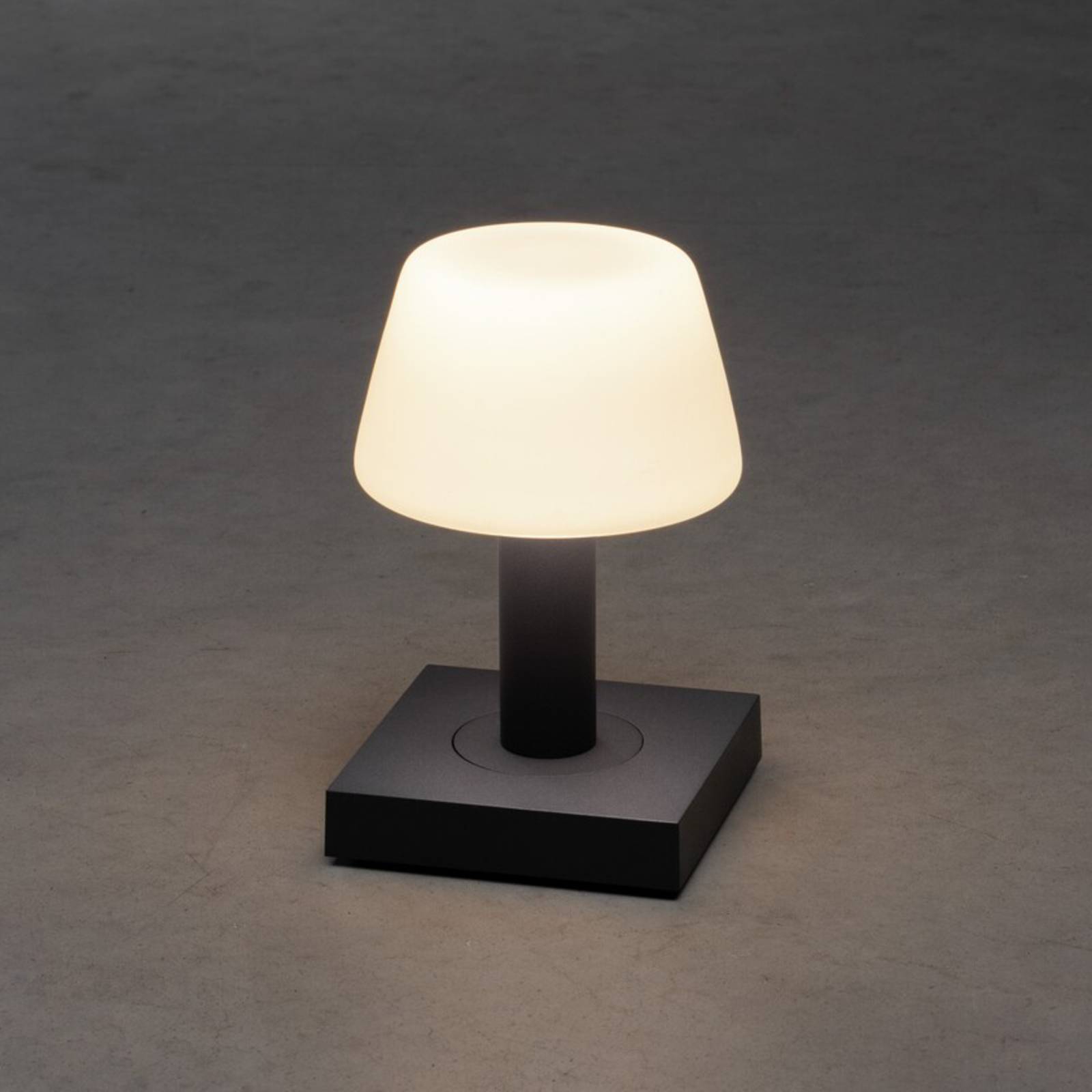 Konstsmide LED stolní lampa Monaco venkovní, baterie, šedá, hliník, sklo, 2.5W, P: 12.5 cm, L: 12.5 cm, K: 19cm