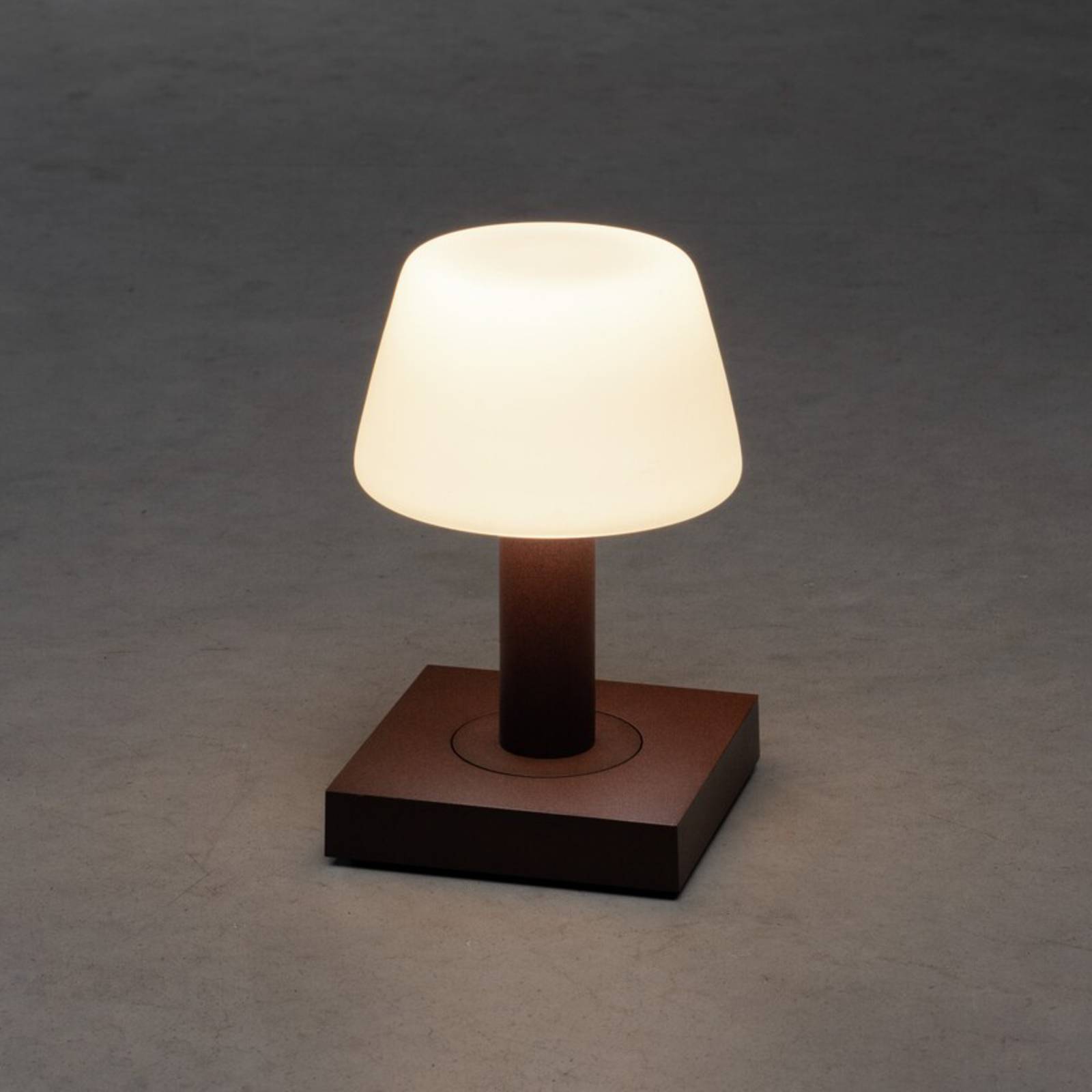 Konstsmide LED stolní lampa Monaco venkovní na baterie, hnědá, hliník, sklo, 2.5W, P: 12.5 cm, L: 12.5 cm, K: 19cm