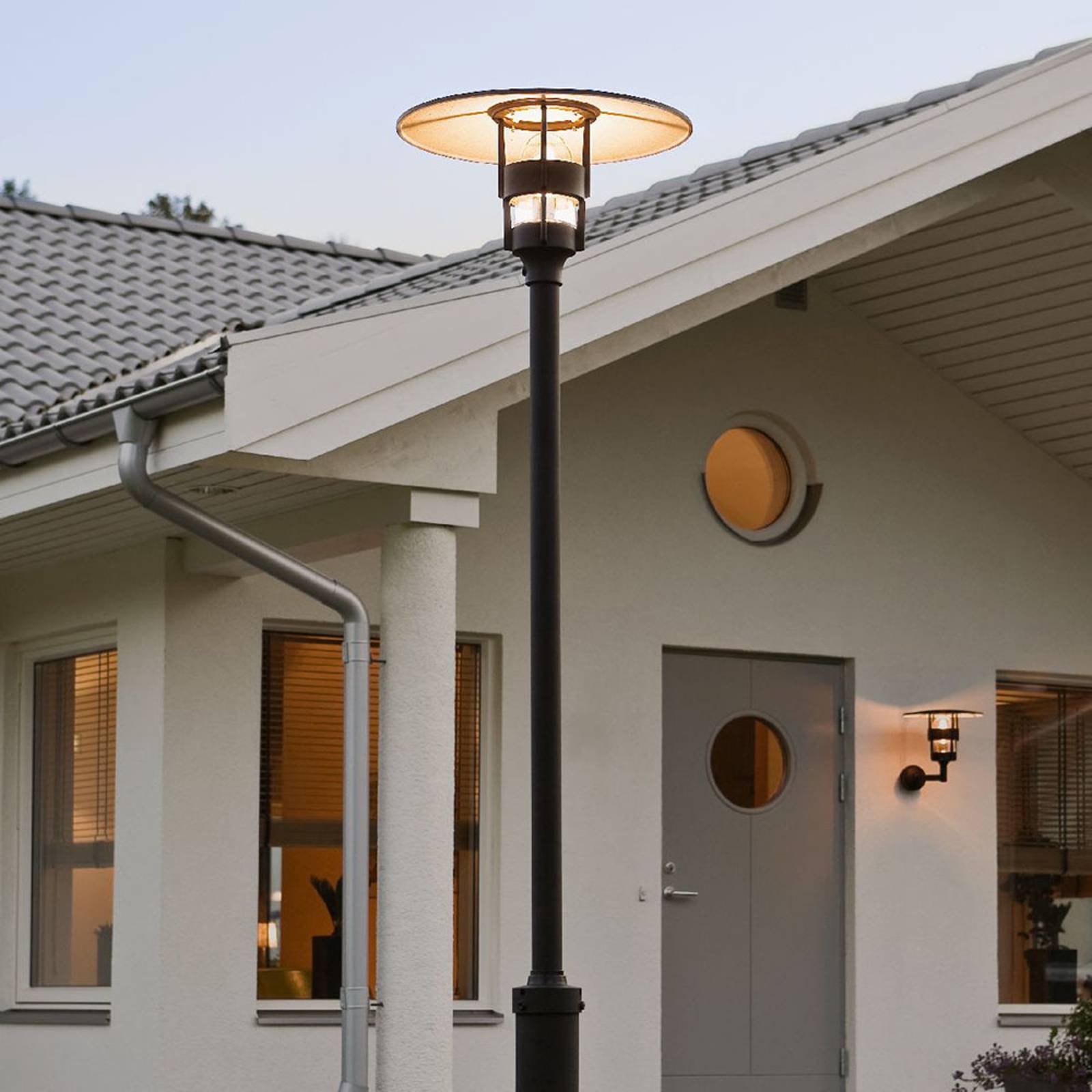 Konstsmide Stožárové světlo Freja, černá, hliník, sklo, E27, 60W, K: 232cm