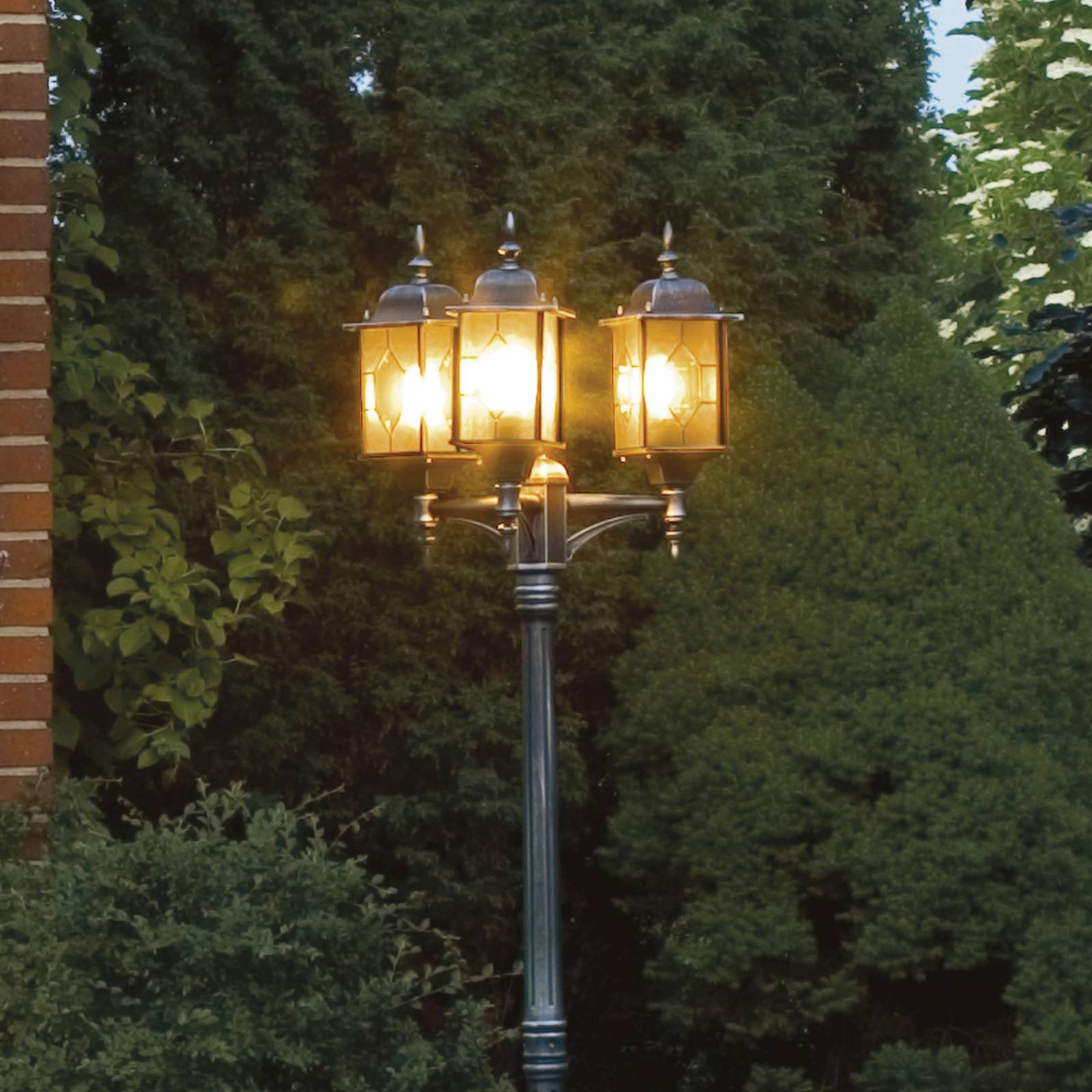 Konstsmide Stožárové svítidlo Milano, 3 žárovky, hliník, akrylátové sklo, E27, 75W, L: 57 cm, K: 230cm