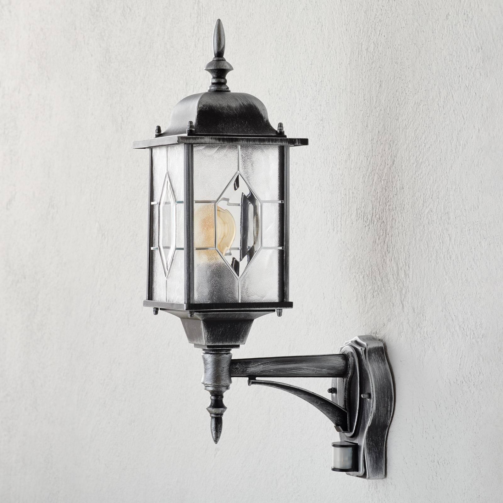 Konstsmide Venkovní nástěnné svítidlo Milano, detektor pohybu, kov, akrylátové sklo, E27, 75W, L: 16 cm, K: 53cm