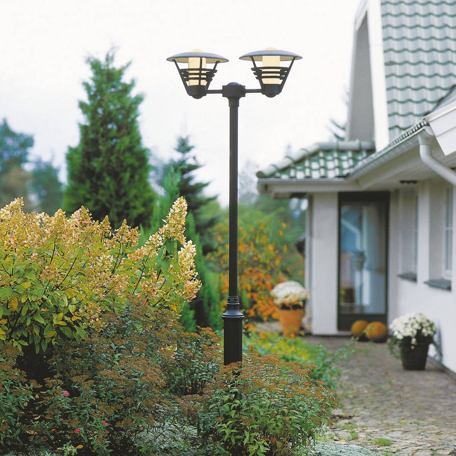 Konstsmide Dvoužárovkové stožárové svítidlo GEMINI černé, sklo, hliníkový odlitek, E27, 100W, L: 78 cm, K: 233cm