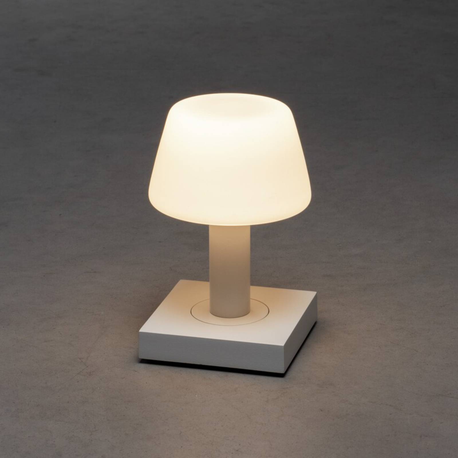 Konstsmide LED stolní lampa Monaco venkovní na baterie, bílá, hliník, sklo, 2.5W, P: 12.5 cm, L: 12.5 cm, K: 19cm