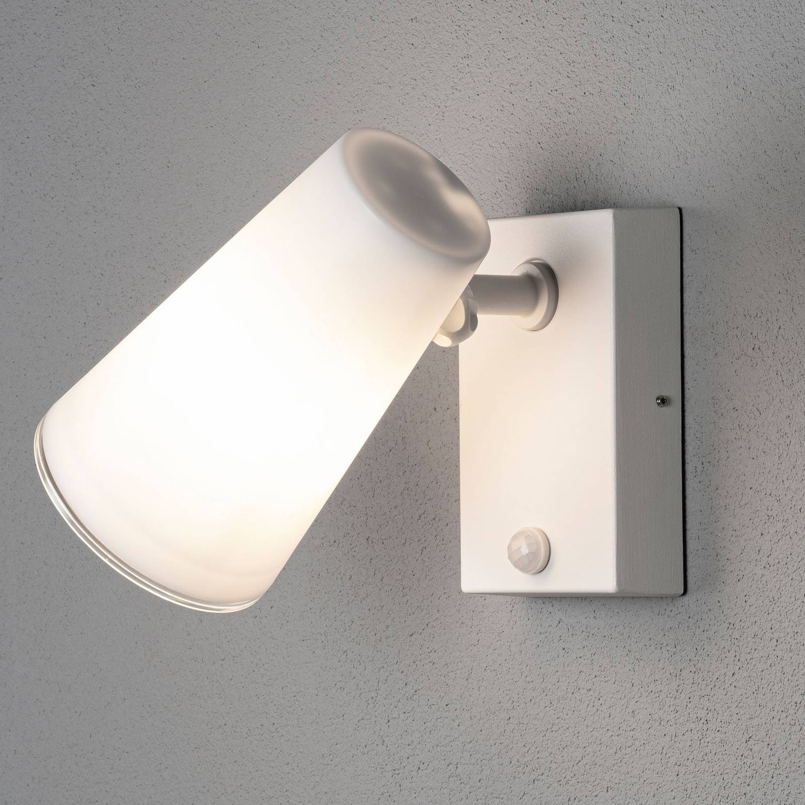 Konstsmide LED venkovní nástěnný reflektor Fano hlásič pohybu, hliník, plast, E27, 25W, L: 12 cm, K: 21.5cm