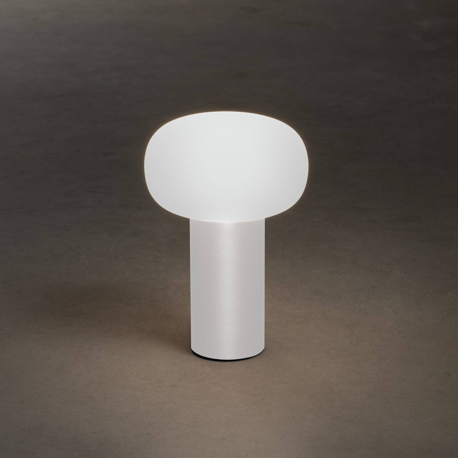 Konstsmide LED stolní lampa Antibes, IP54, baterie, RGBW bílá, hliník, sklo, 2.5W, K: 19cm