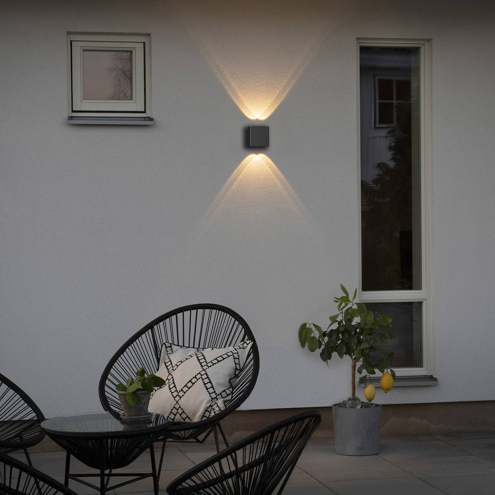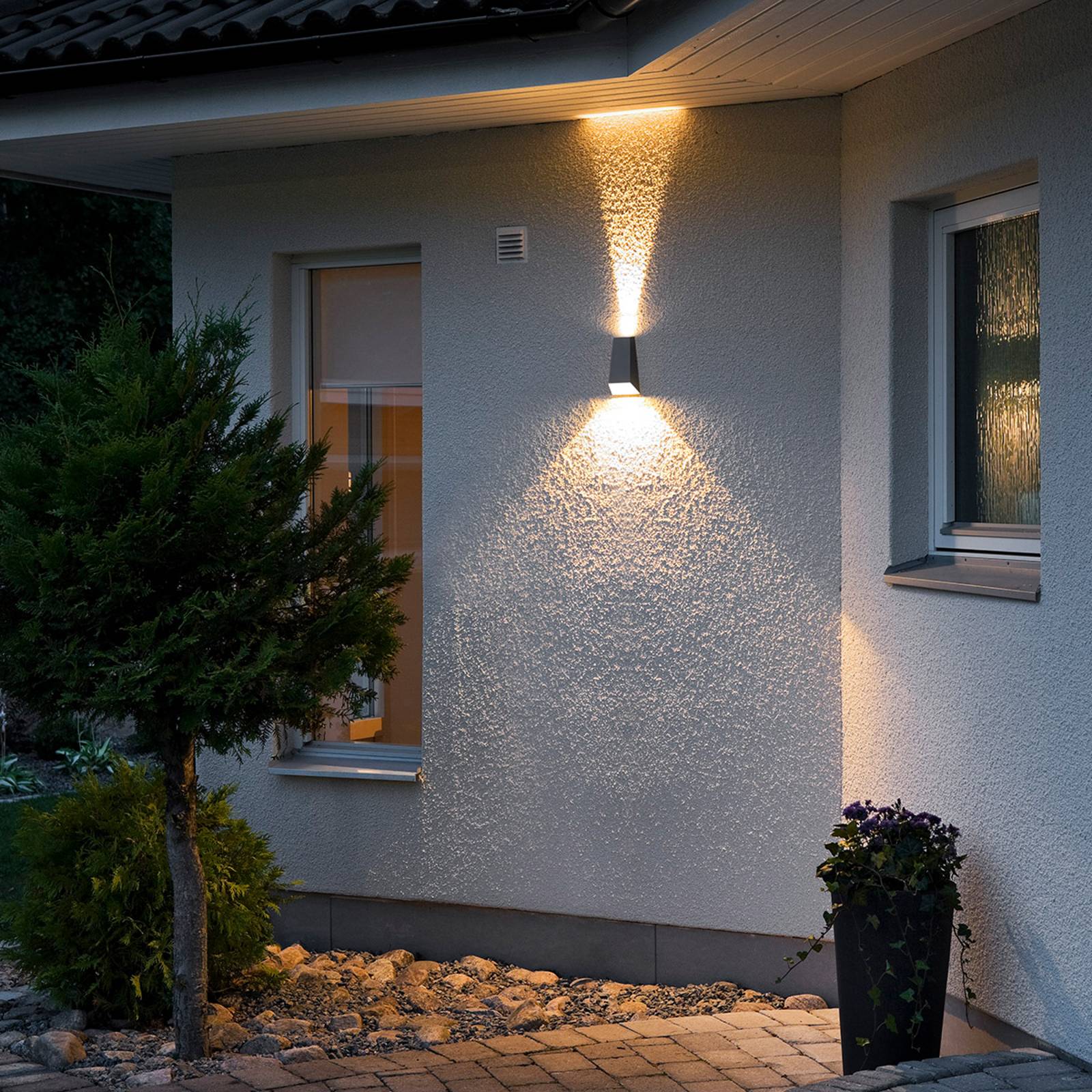 Konstsmide LED venkovní nástěnné světlo Gela, up down, šedá, hliník, sklo, 6W, Energetická třída: G, L: 11 cm, K: 6.5cm