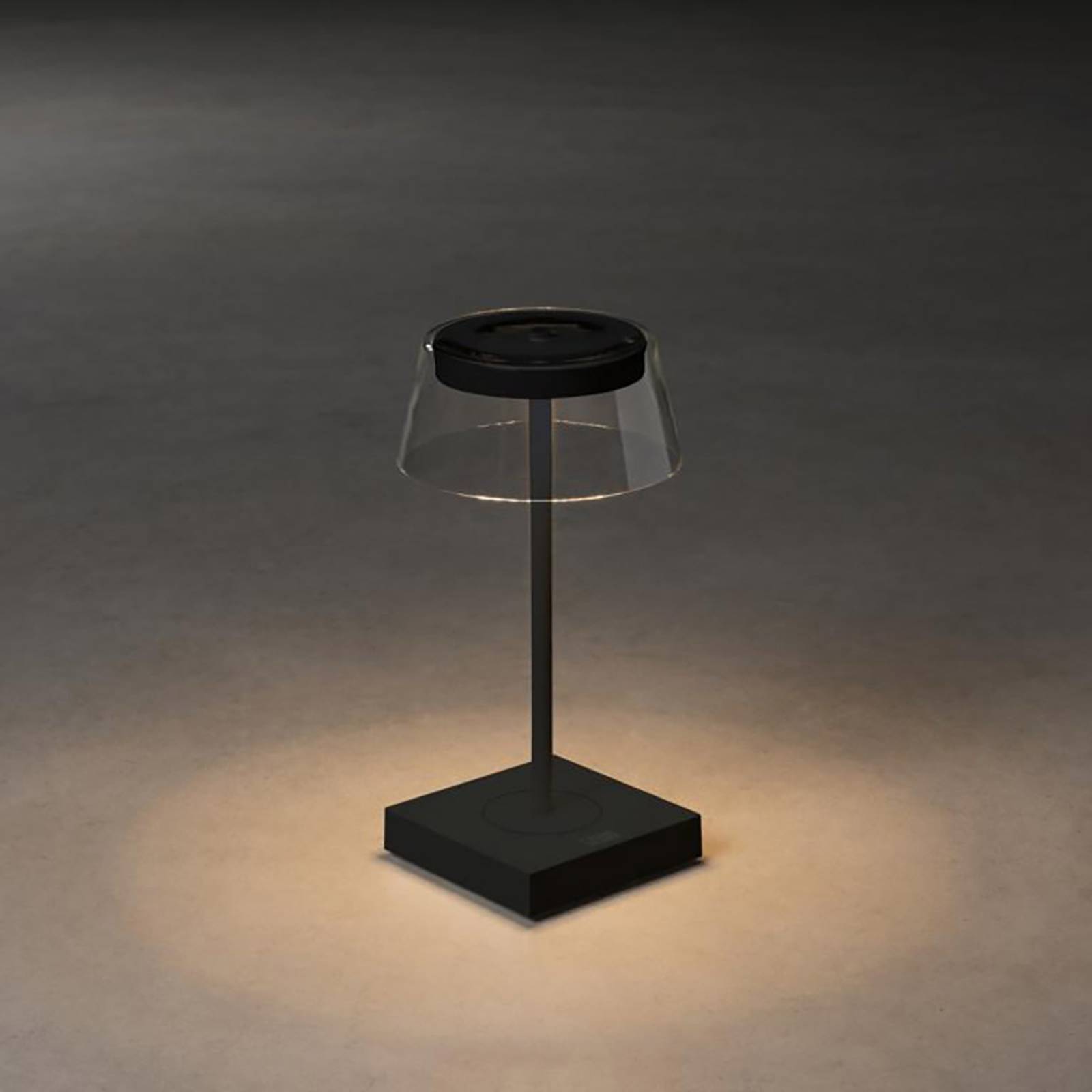 Konstsmide Stolní lampa Scilla LED s USB, černá, Hliník, sklo, 2.5W, P: 11 cm, L: 11 cm, K: 27cm