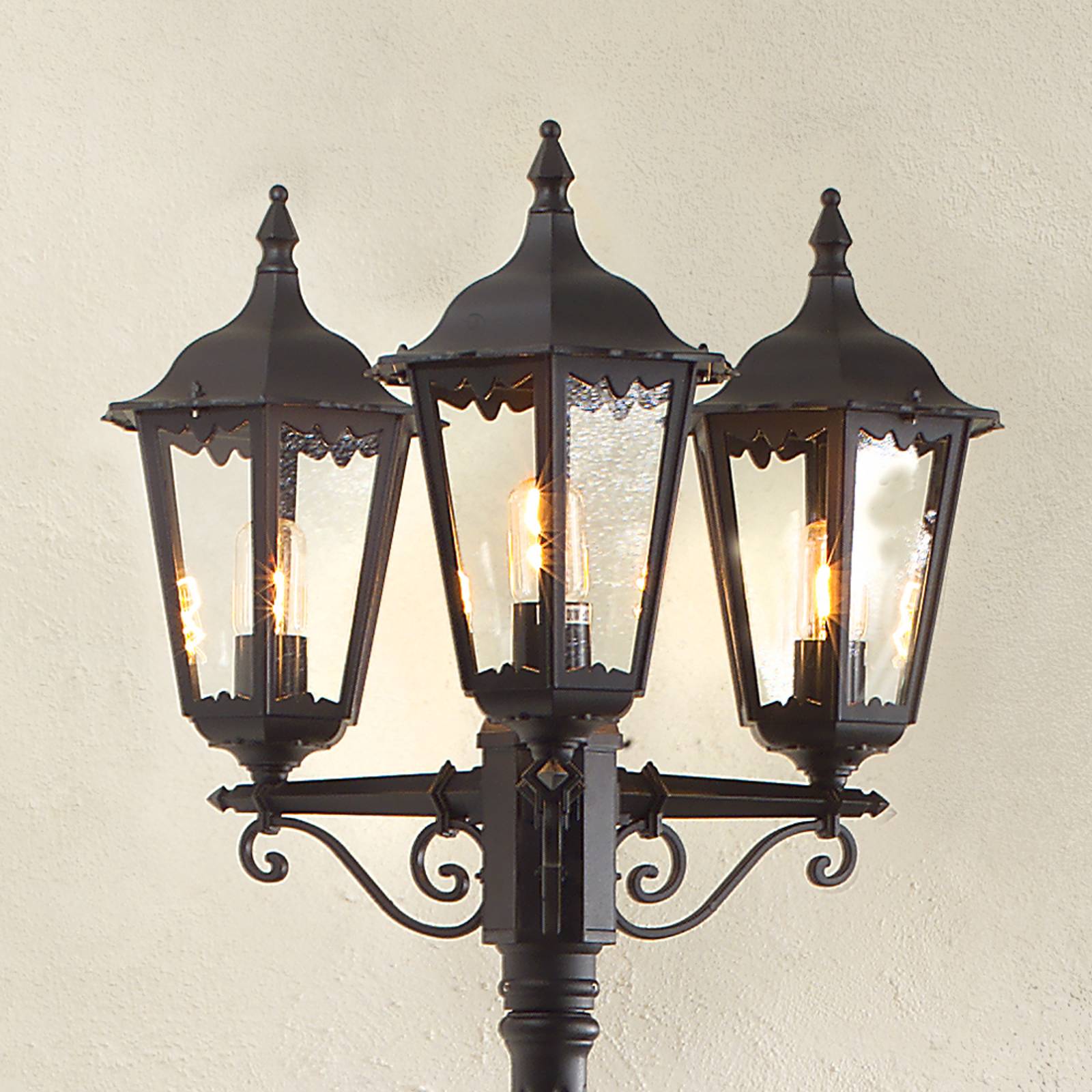 Konstsmide Stožárové svítidlo Firenze, 3 lucerny, černé, hliník, sklo, E27, 100W, K: 220cm