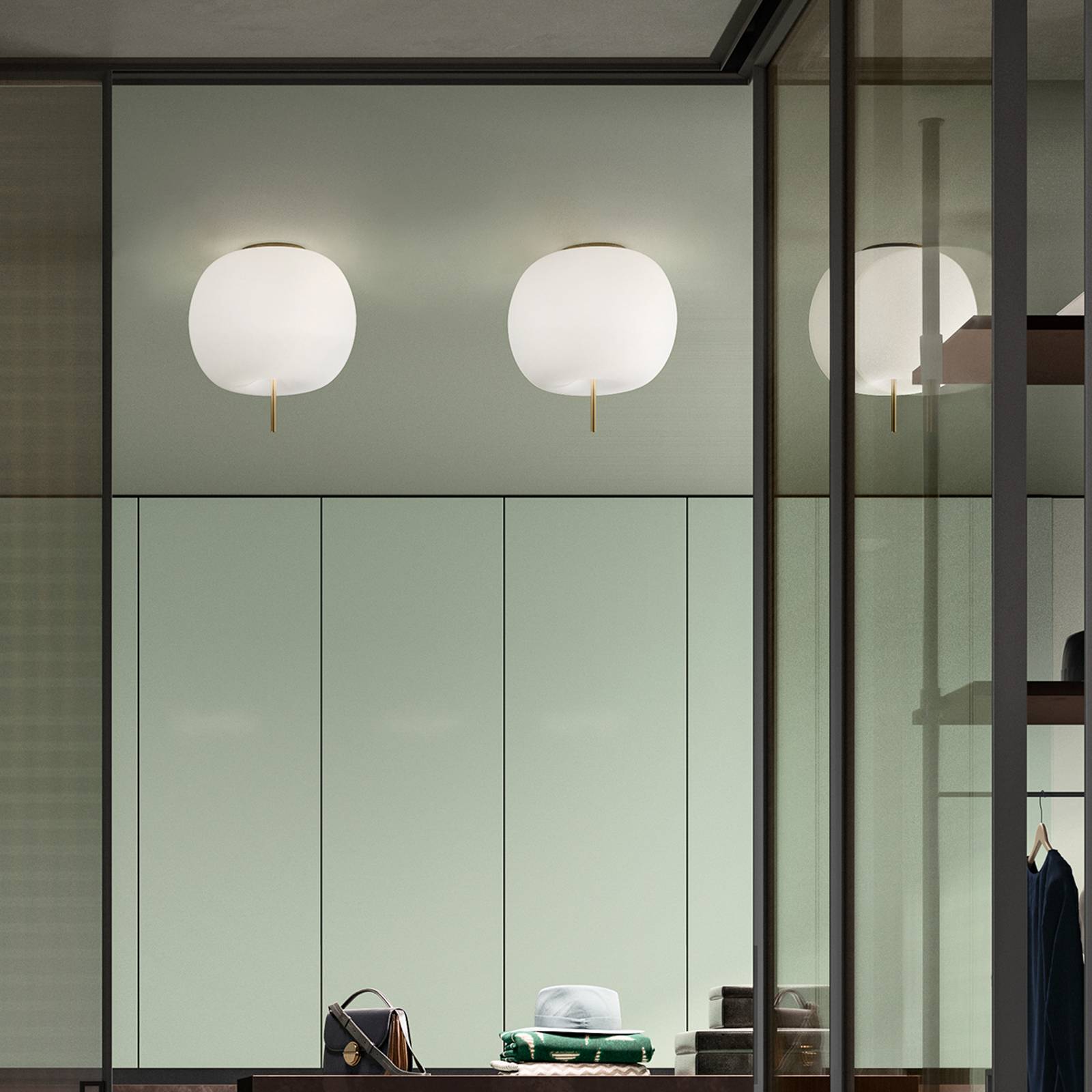 Kundalini Stropní svítidlo Kushi 33, Ø 33 cm, mosaz, Obývací pokoj / jídelna, Kov, foukané sklo, E27, 30W, K: 32cm