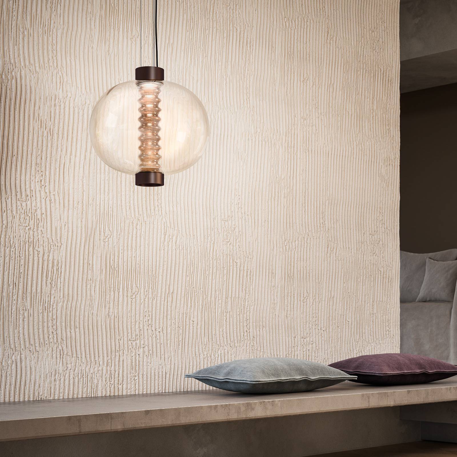 Kundalini Bolha LED závěsné světlo ze skla, hnědá, Obývací pokoj / jídelna, borosilikátové sklo, sklo foukané, hliník, 19W, K: 38cm
