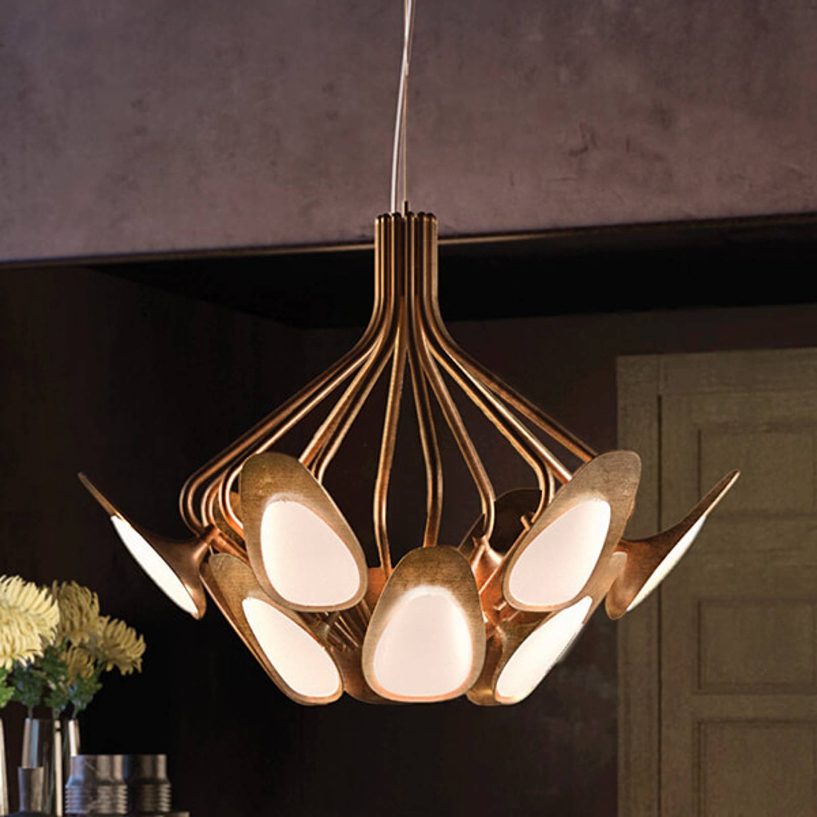 Kundalini Kushi závěsné světlo Ø 43 cm mosaz/bílé, Obývací pokoj / jídelna, kov, sklo, E27, 60W, K: 64.5cm