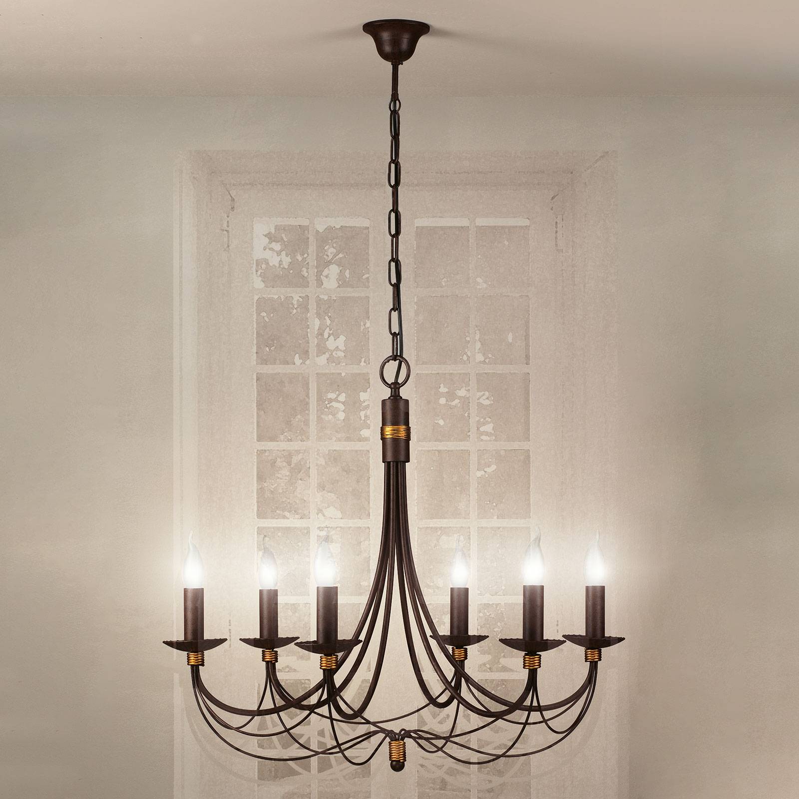 Lam Závěsné světlo Federico antické, 6 zdrojů, Obývací pokoj / jídelna, sklo, kov, E14, 40W, K: 52cm