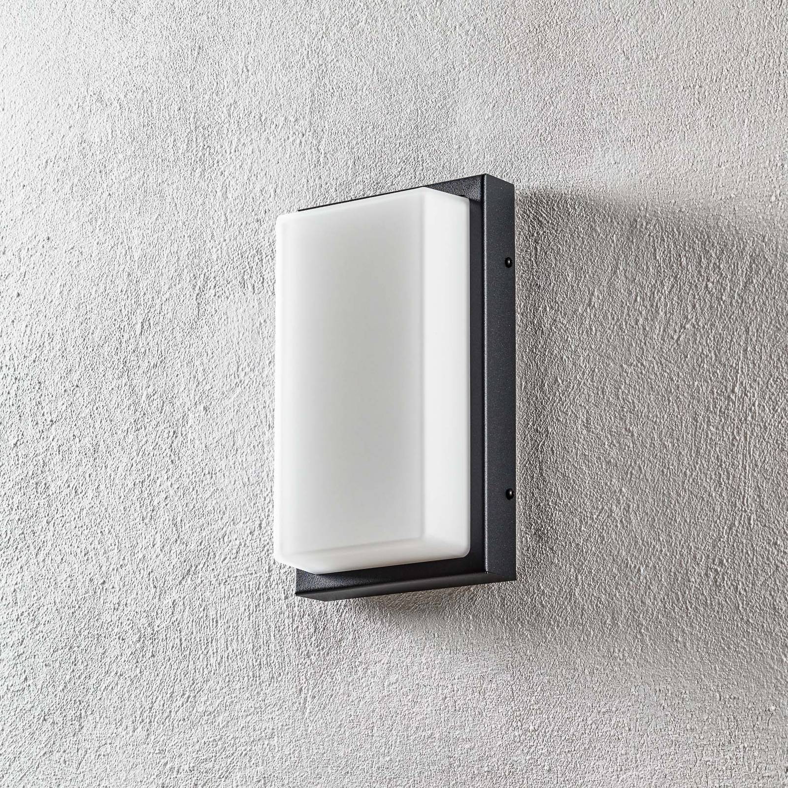 LCD S krytem z nerezové oceli – venkovní nástěnné svítidlo Julea, Hliníkový odlitek, nerezová ocel, opálové sklo, E27, 75W, L: 17 cm, K: 29cm