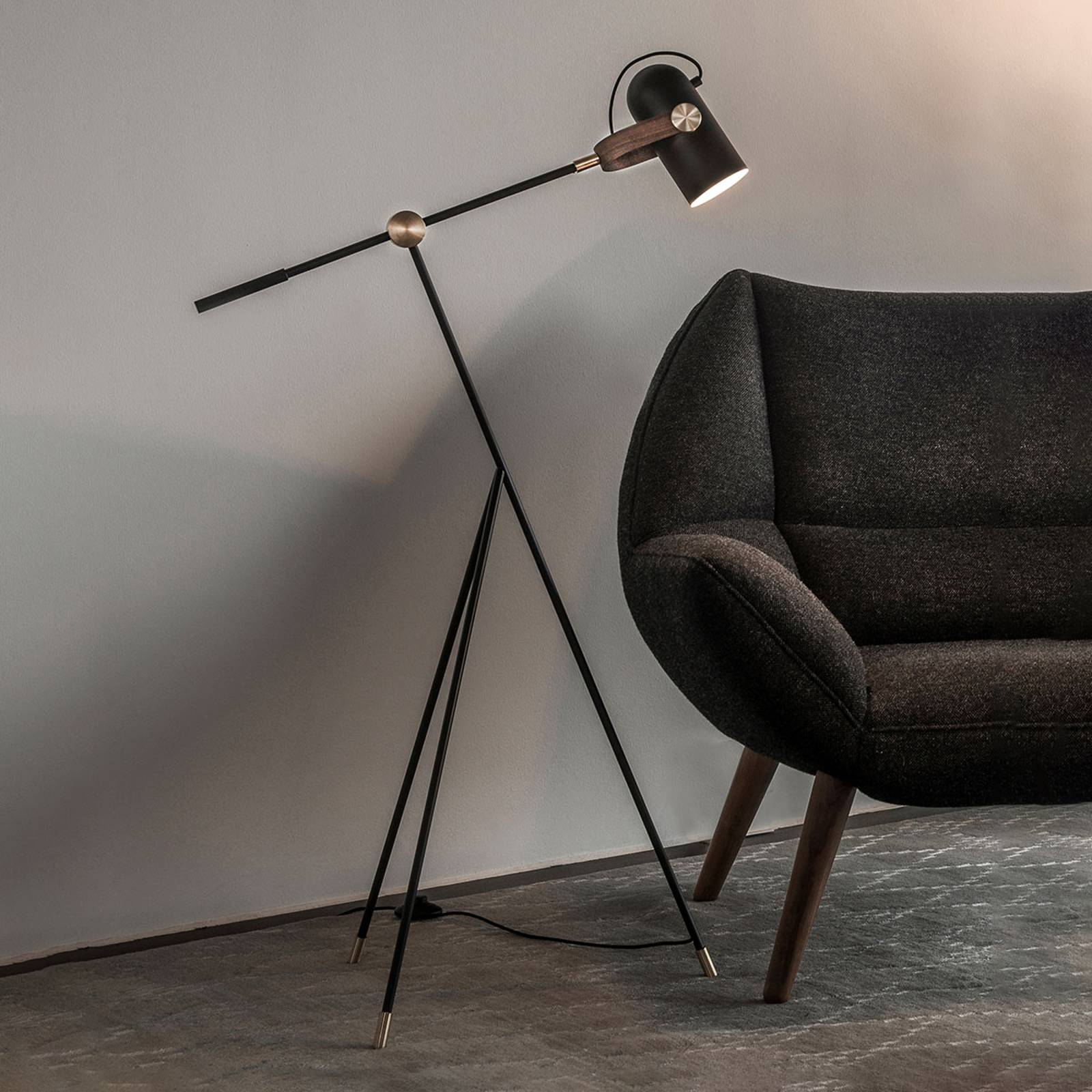 LE KLINT Carronade Low – černá stojací lampa, Obývací pokoj / jídelna, ocel, mosaz, ořechové dřevo, E14, 10W, K: 133cm