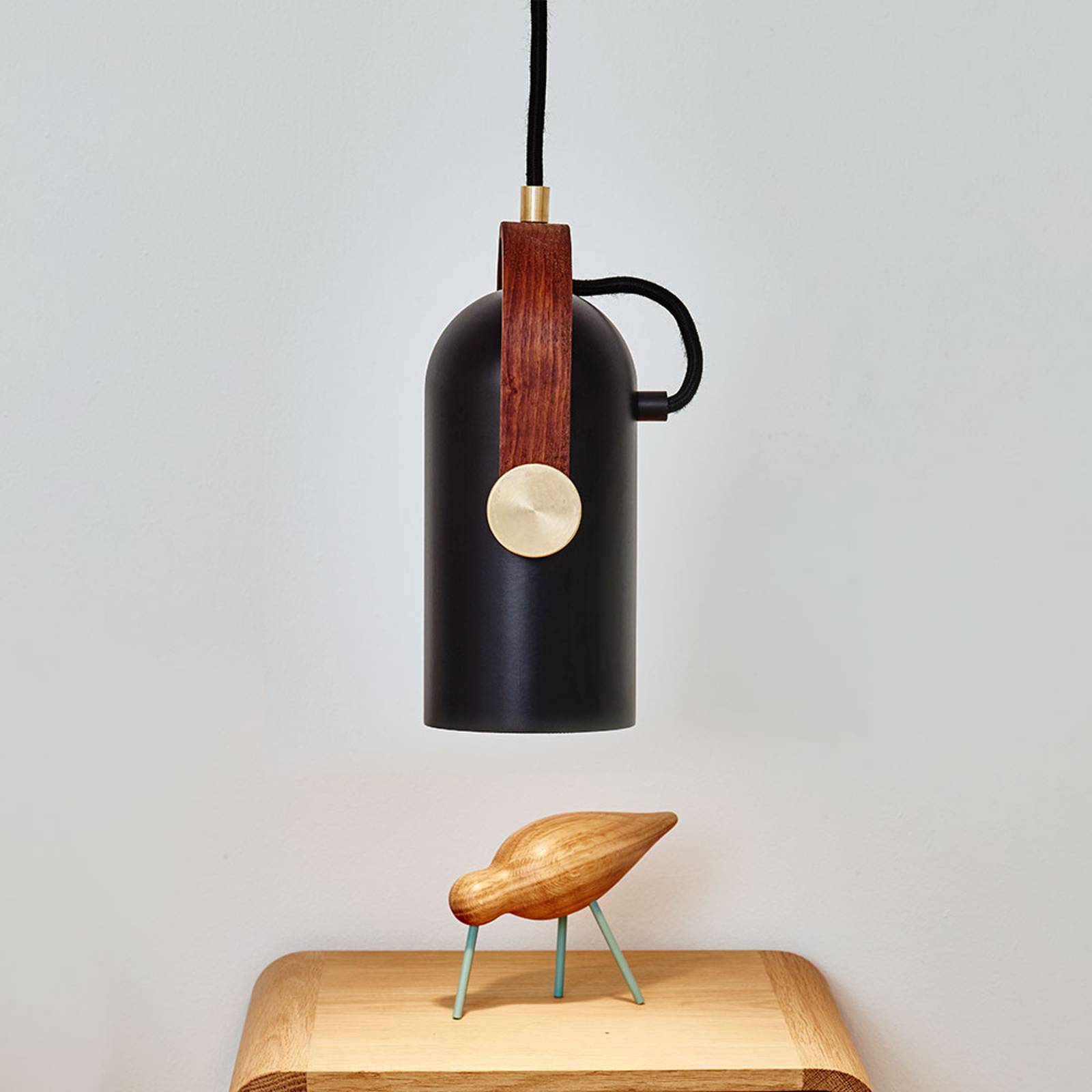 LE KLINT Carronade M – závěsné světlo v černé, Obývací pokoj / jídelna, ocel, mosaz, ořechové dřevo, E27, 15W, K: 36cm