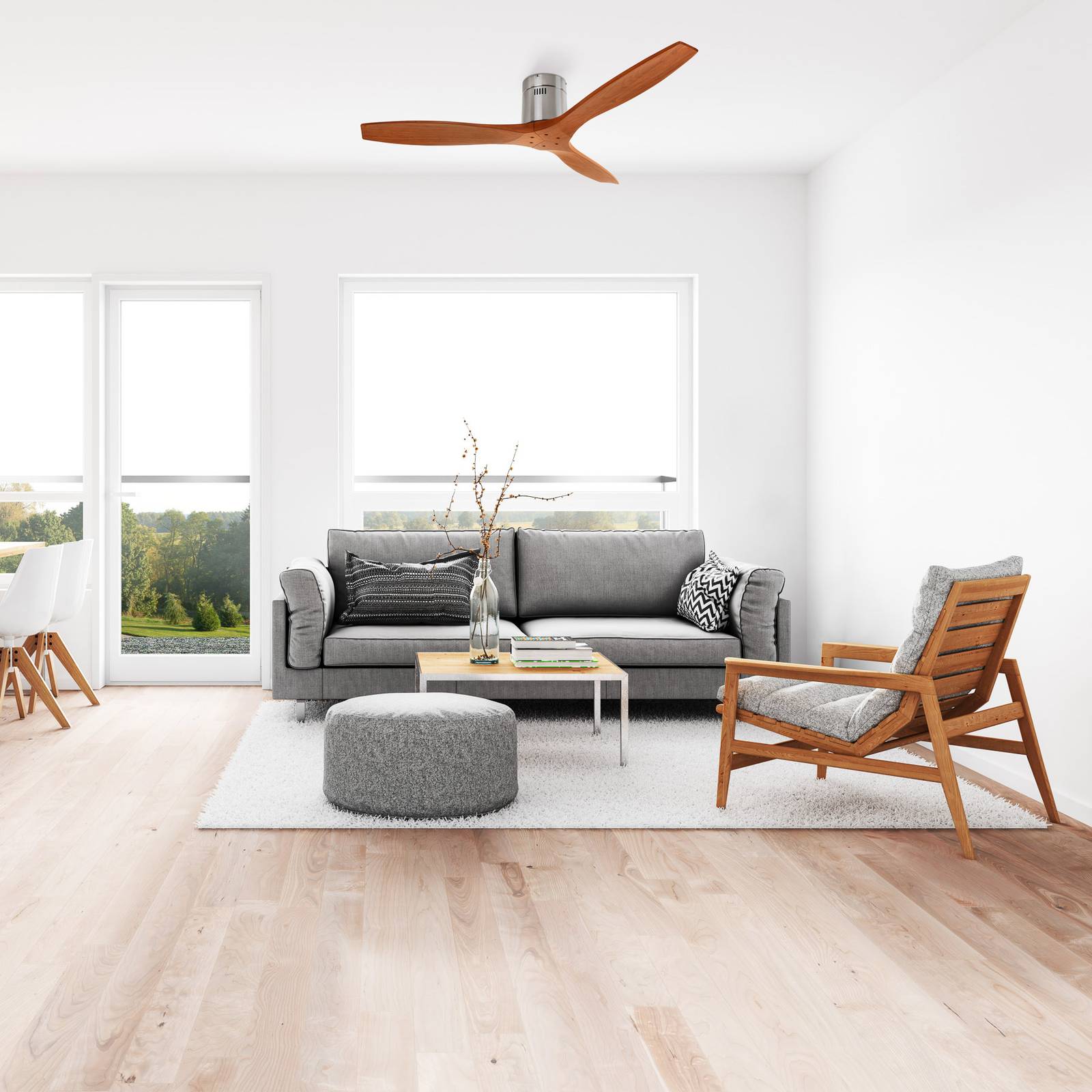 LEDS-C4 Stropní ventilátor Stem dřevěné lopatky, tmavé, Obývací pokoj / jídelna, ocel, javorové dřevo, K: 22.9cm