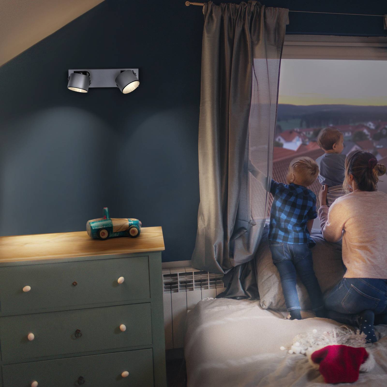 LEDVANCE LED stropní spot Pluto, ocel, dřevo, 2 světla, bílý, Obývací pokoj / jídelna, Ocel, dřevo, 4.8W, P: 29.8 cm, L: 9 cm, K: 10.8cm