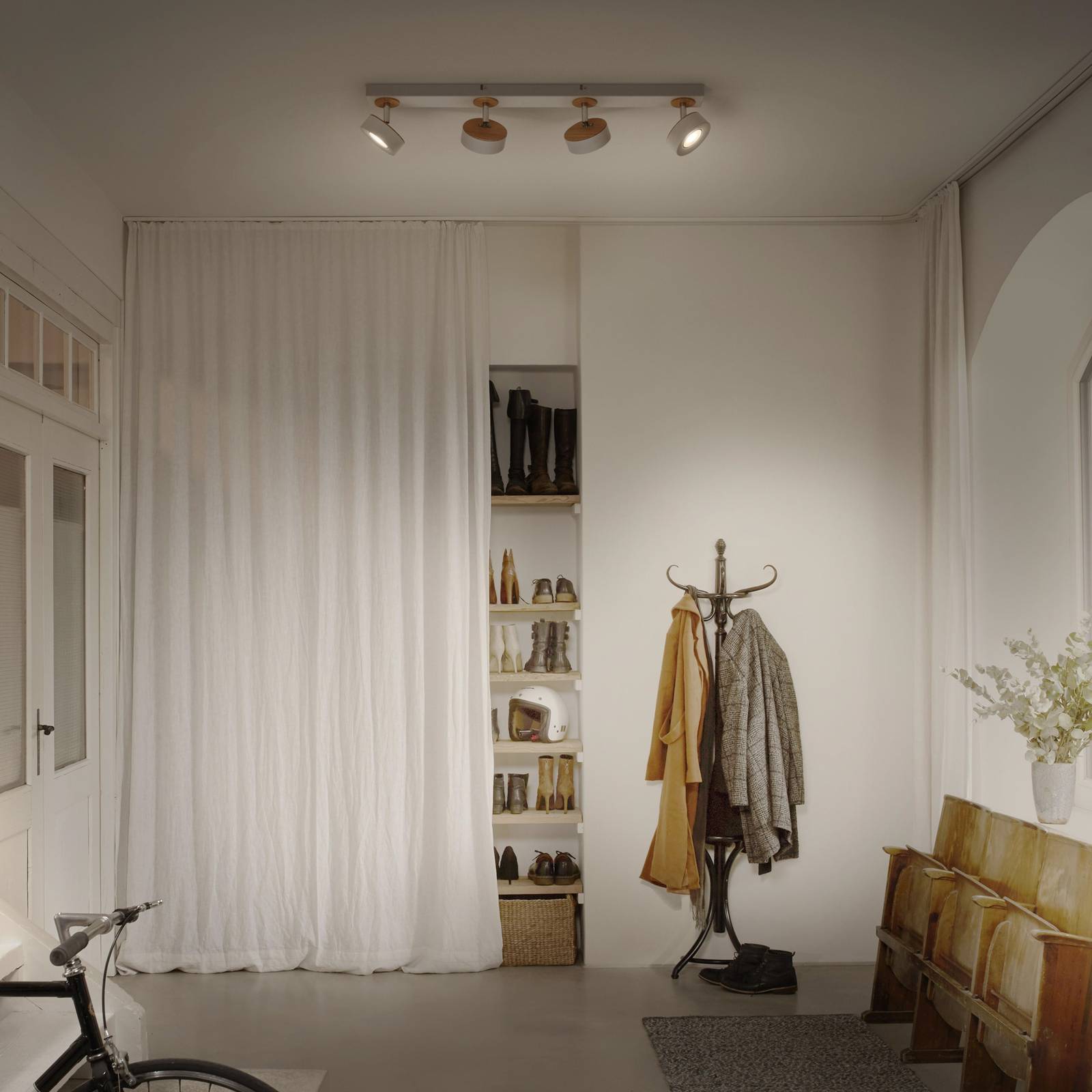 LEDVANCE LED stropní spot Pluto, ocel, dřevo, 4 světla, bílý, Obývací pokoj / jídelna, Ocel, dřevo, 4.8W, P: 69.8 cm, L: 9 cm, K: 10.8cm