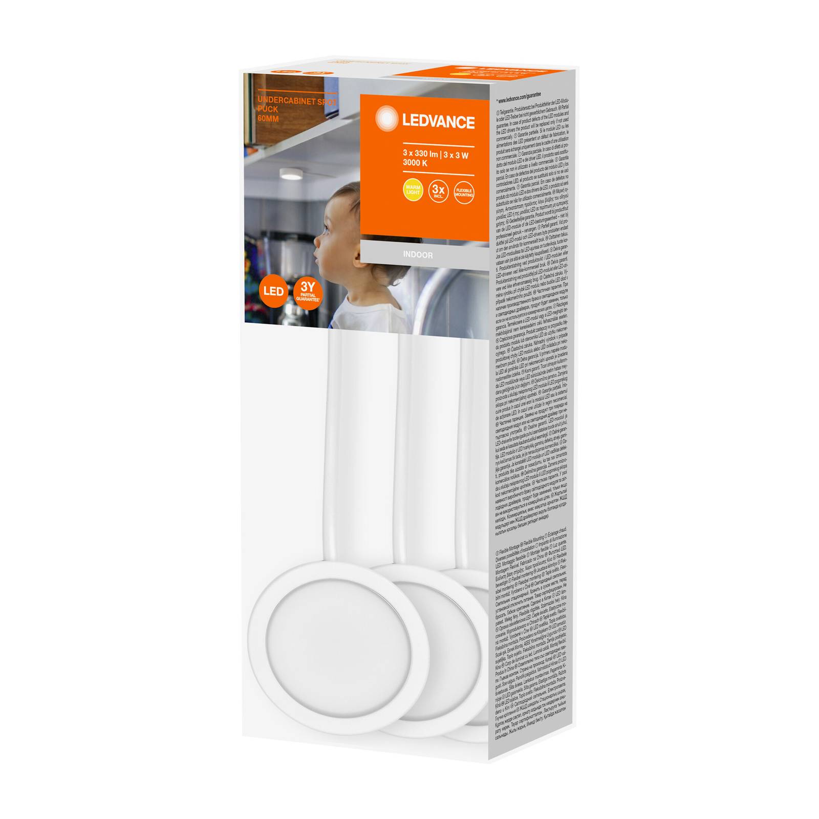 LEDVANCE Undercabinet Puck LED bodovka 3ks bílá, Kuchyň, hliník, plast, 3W, K: 1.9cm
