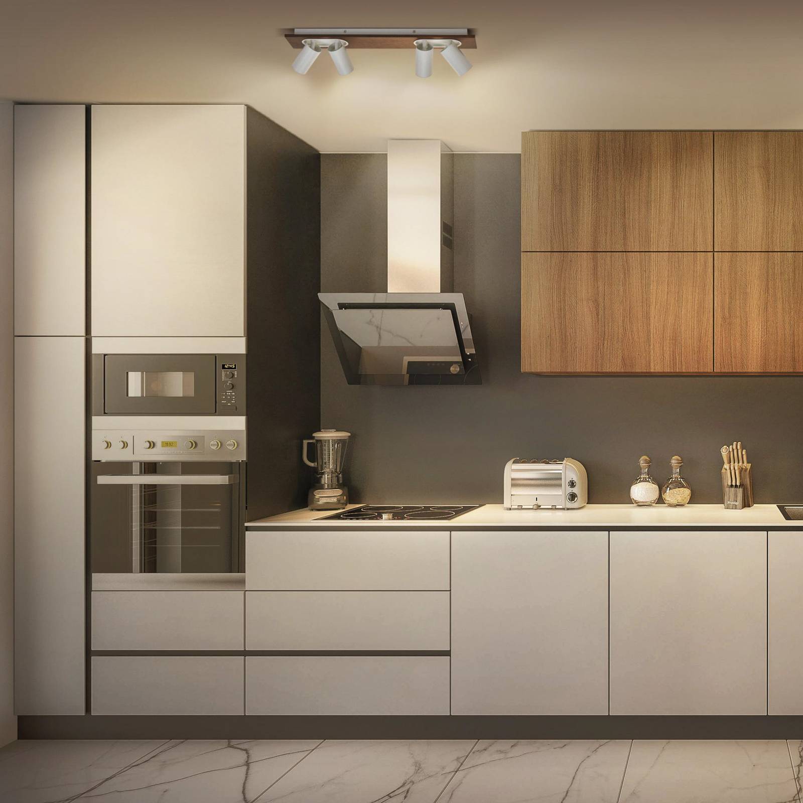 LEDVANCE LED bodový stropní svítidlo Mercury GU10, 4 světla, dřevo/bílá, Obývací pokoj / jídelna, Ocel, dřevo, GU10, 3.4W, P: 60 cm, L: 10 cm, K: 14.2cm