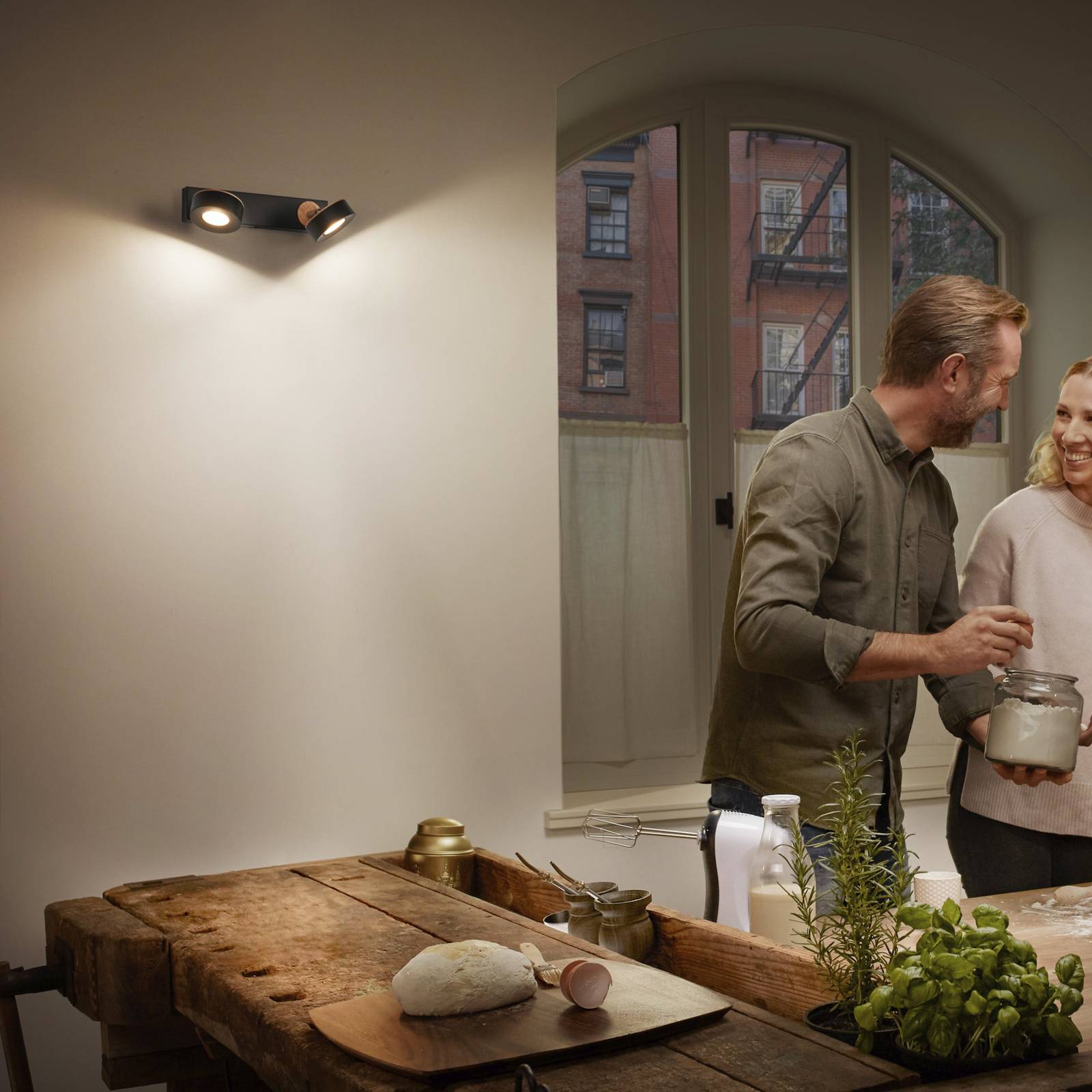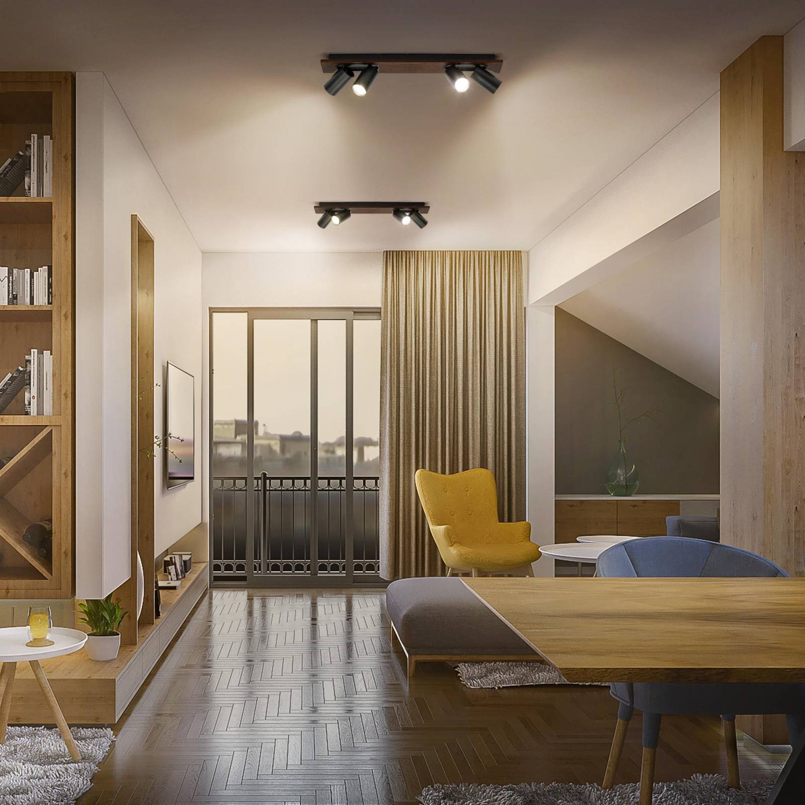 LEDVANCE LED stropní spot Pluto, ocel, dřevo, 2 světla, černý, Obývací pokoj / jídelna, Ocel, dřevo, 4.8W, P: 29.8 cm, L: 9 cm, K: 10.8cm