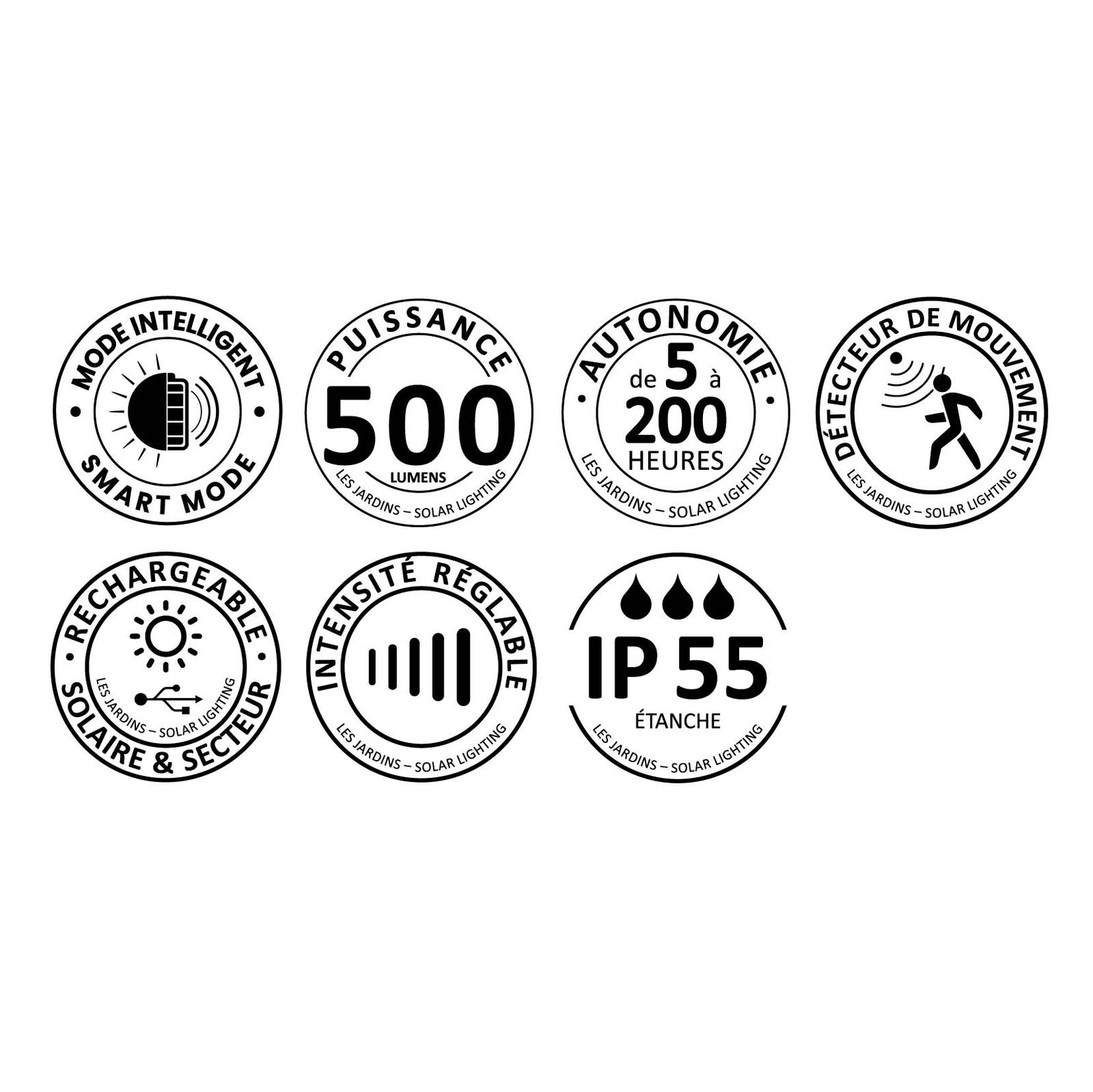 Les Jardins LED solární světlo Borne se senzorem, 45 cm, šedá, hliník, 3W, P: 13 cm, L: 13 cm, K: 45cm