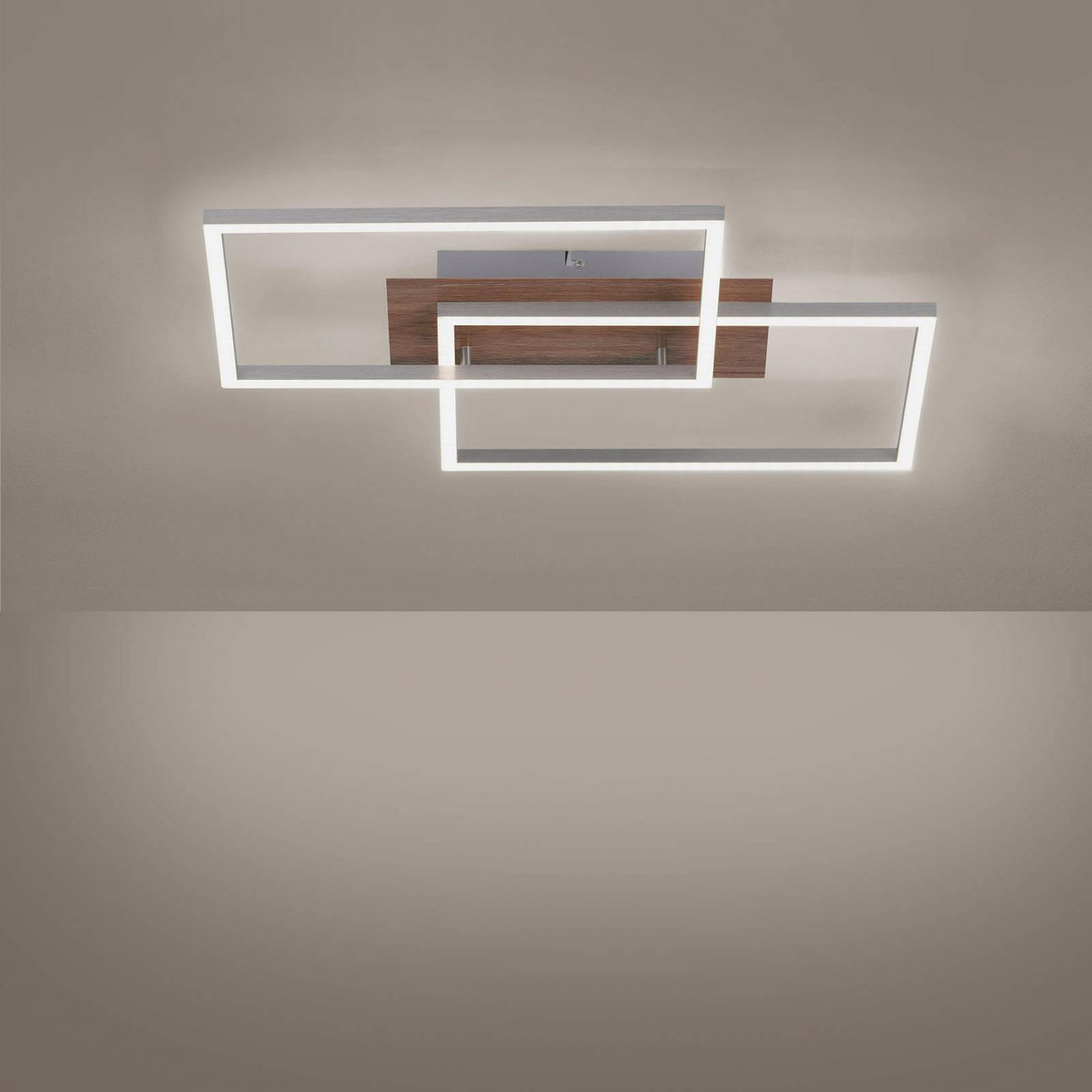 JUST LIGHT. LED stropní světlo Iven, dim, ocel/dřevo 50, 4x42cm, Ložnice, nerez, hliník, plast, 35W, Energetická třída: F, P: 50.4 cm, L: 42 cm, K: 7cm