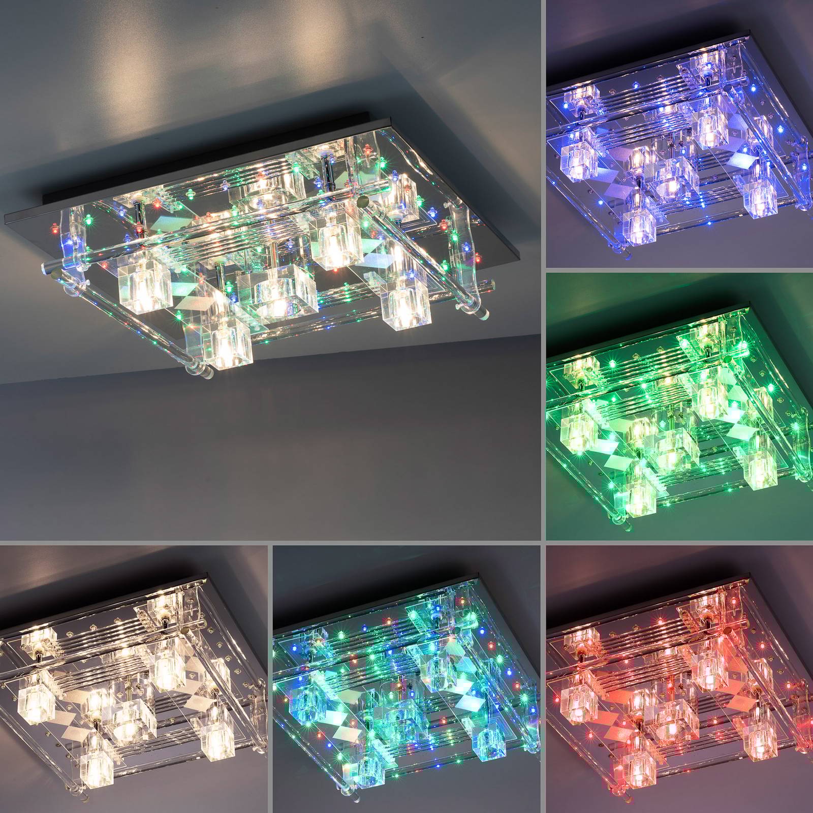 JUST LIGHT. LED stropní svítidlo Kemal 2.0, chrom s RGB, Obývací pokoj / jídelna, Železo, nerezová ocel, hliník, plast, G4, 1.5W, P: 50 cm, L: 50 cm, K: 15cm