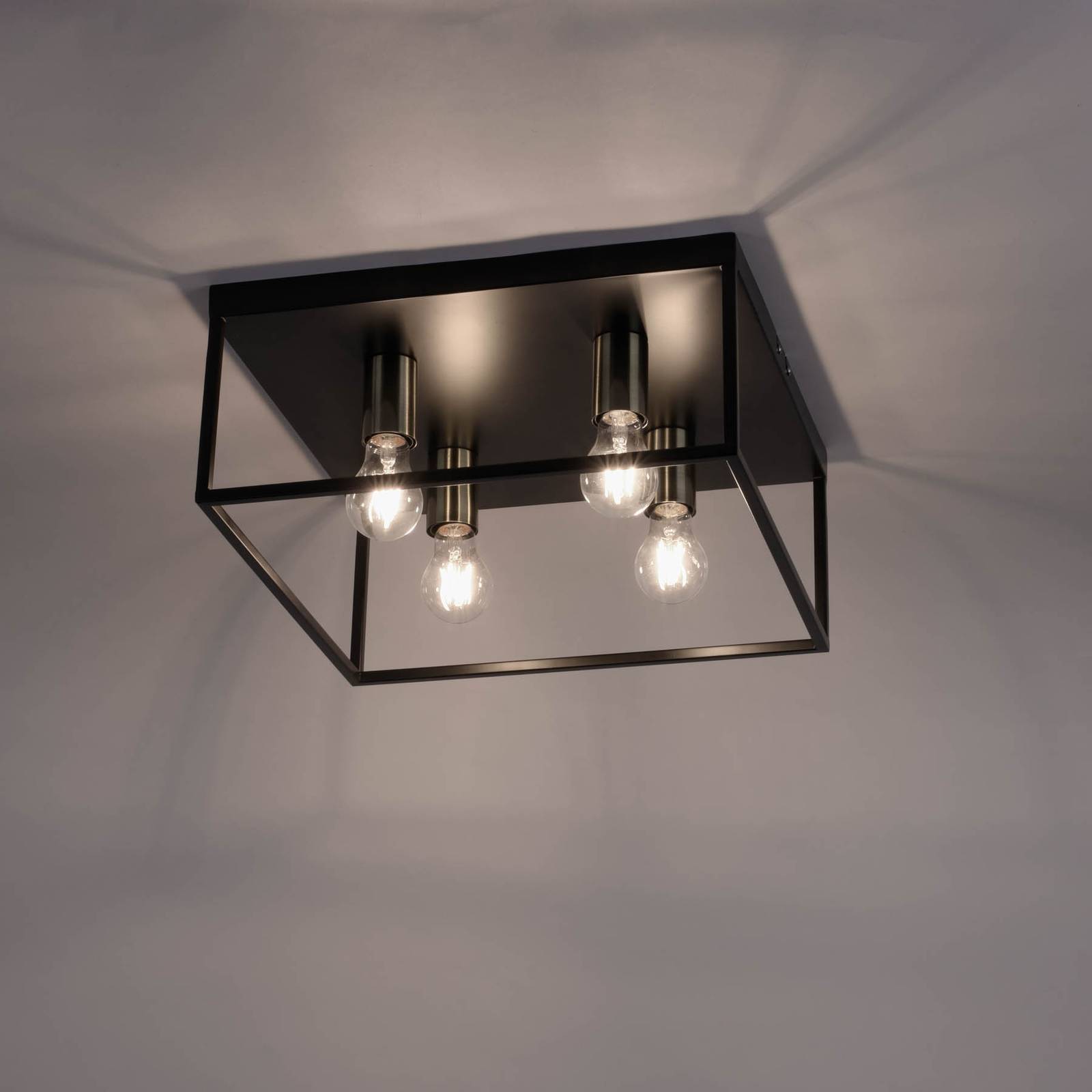 JUST LIGHT. Stropní svítidlo Fabio, čtyřsvětelné, černá/zlatá, Obývací pokoj / jídelna, Iron, E27, 60W, P: 40 cm, L: 40 cm, K: 20cm