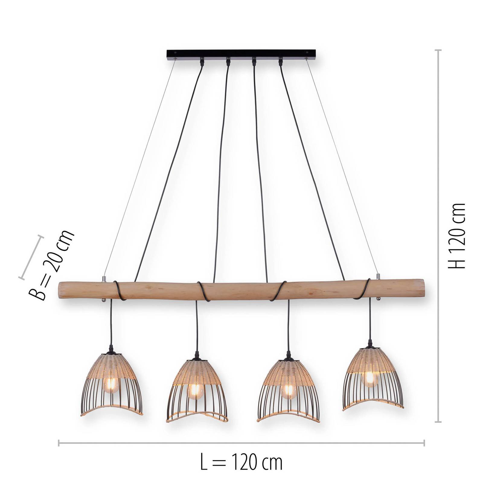 JUST LIGHT. Závěsné světlo Reed ze dřeva, čtyři zdroje, Obývací pokoj / jídelna, kov, dřevo, E27, 60W, P: 120 cm, L: 20 cm