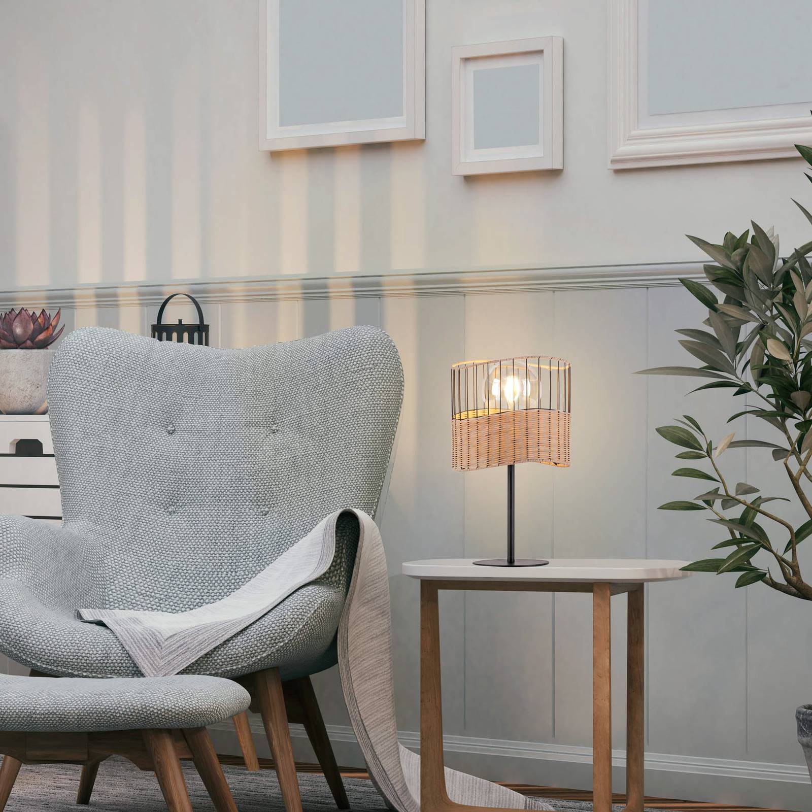 JUST LIGHT. Stolní lampa Reed ze dřeva a kovu, Obývací pokoj / jídelna, kov, dřevo, E27, 60W, P: 25 cm, L: 24.5 cm, K: 42cm