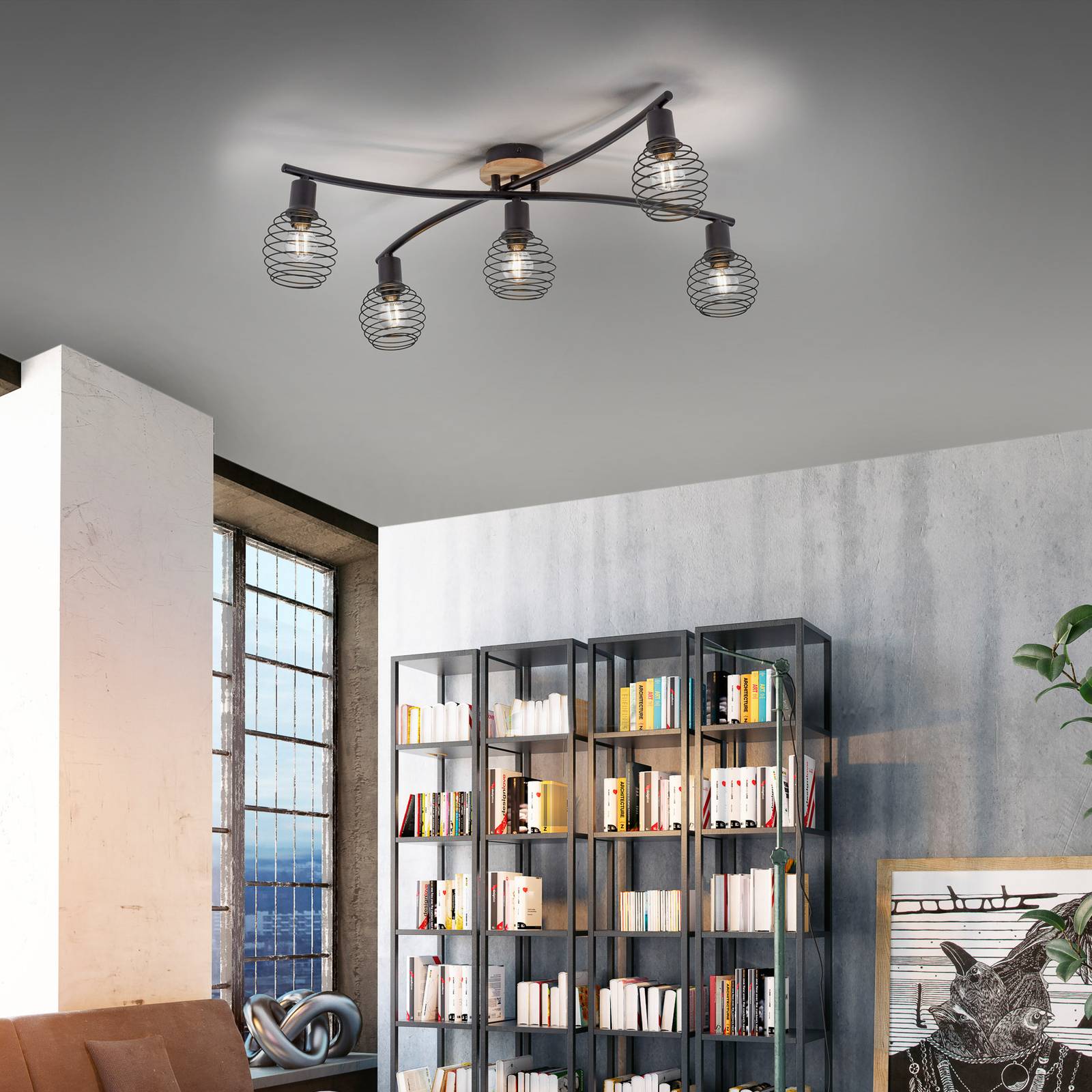 JUST LIGHT. Stropní svítidlo Eugen, dekorace dřeva, 5 zdrojů, Obývací pokoj / jídelna, železo, hliník, plast, E14, 40W, P: 70.1 cm, L: 66.5 cm, K: 20.1cm