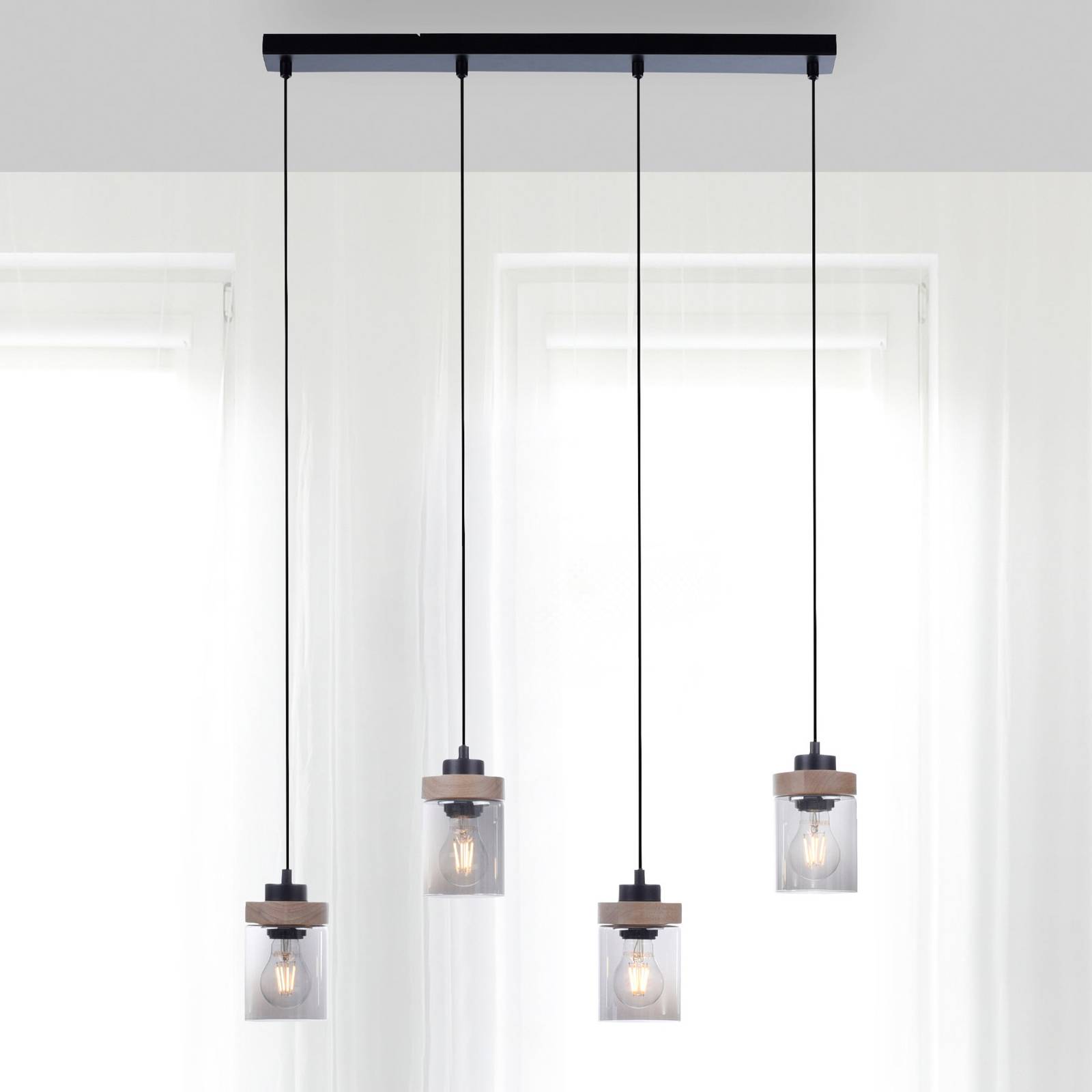 Leuchten Direkt Závěsné světlo Pasqual, čtyři zdroje, Obývací pokoj / jídelna, hliník, železo, sklo, gumovník, E27, 40W, P: 70 cm, L: 10 cm