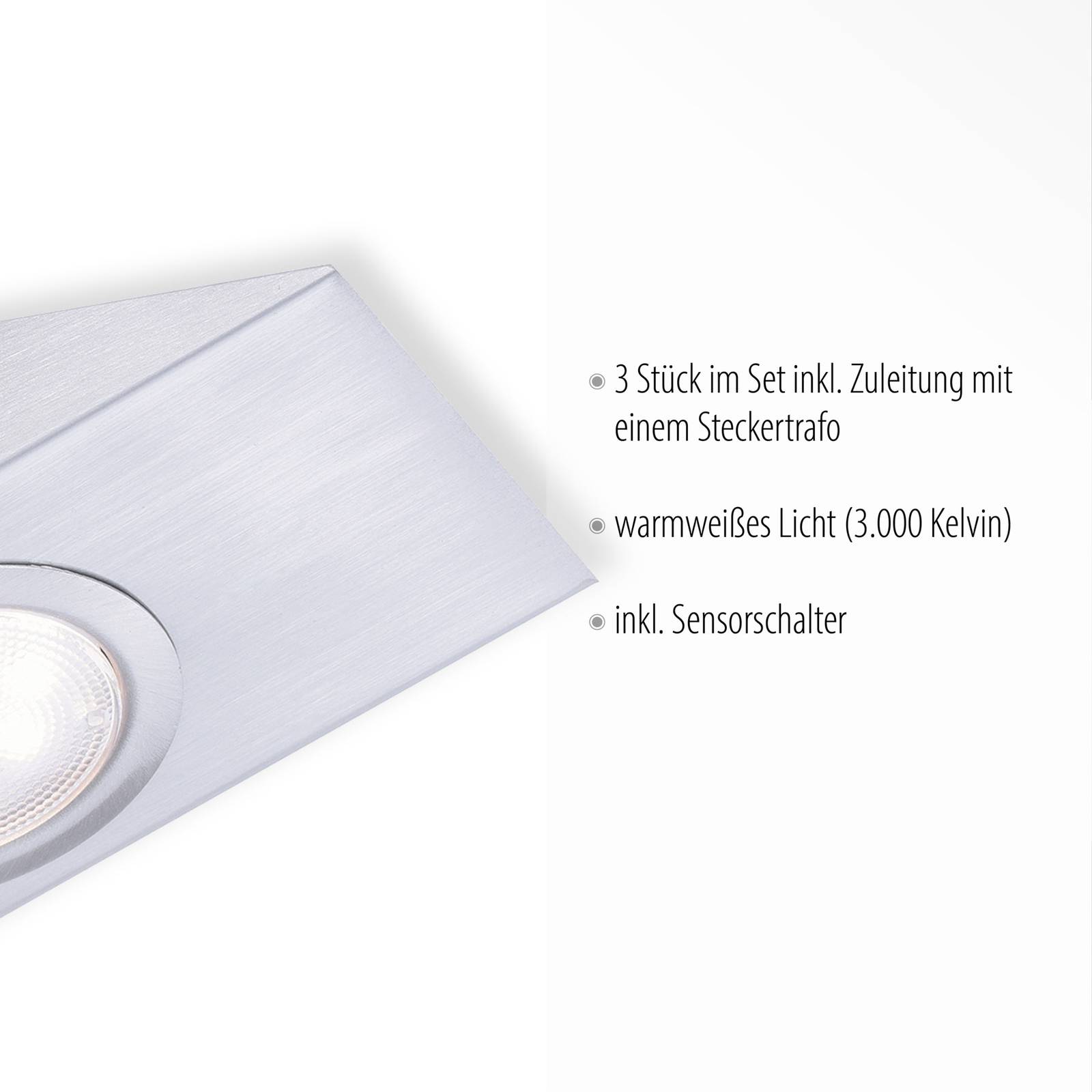 JUST LIGHT. LED osvětlení pod skříňku Theo, čtvercové, sada 3 kusů, Kuchyň, Plastové, 3.6W, P: 12 cm, L: 8 cm, K: 4.8cm