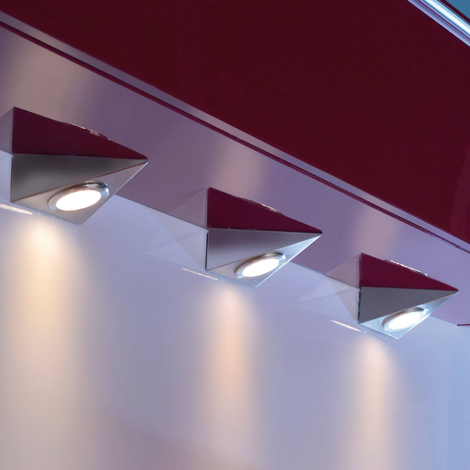 JUST LIGHT. LED podhledové světlo Theo, trojúhelník, sada 3 ks, Kuchyň, plast, 3.6W, P: 13.8 cm, L: 11 cm, K: 4.7cm