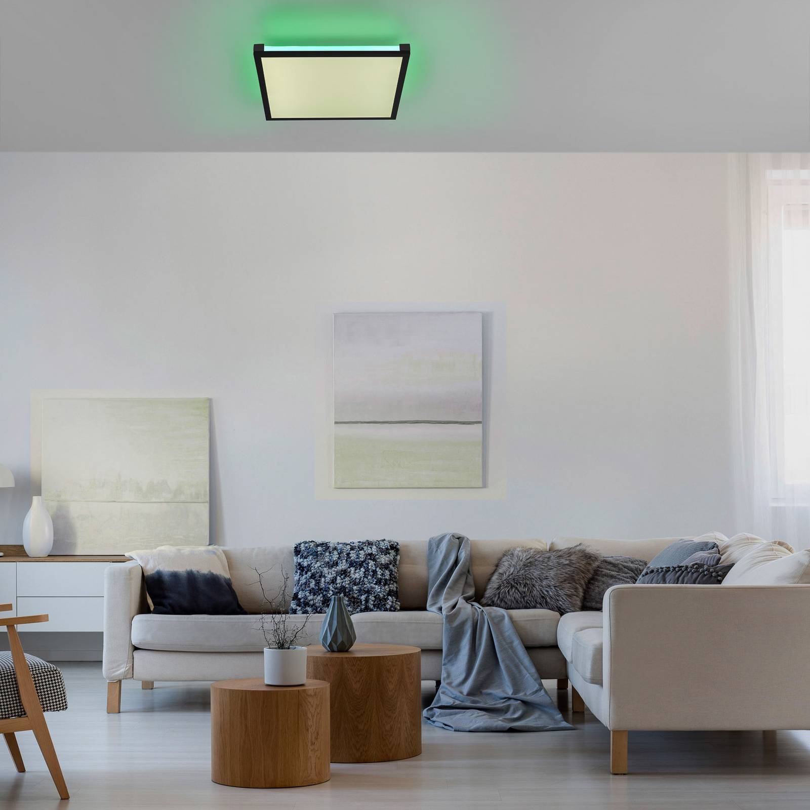 JUST LIGHT. LED stropní světlo Mario 45x45cm stmívatelné RGBW, Obývací pokoj / jídelna, železo, hliník, plast, P: 45 cm, L: 45 cm, K: 7.1cm
