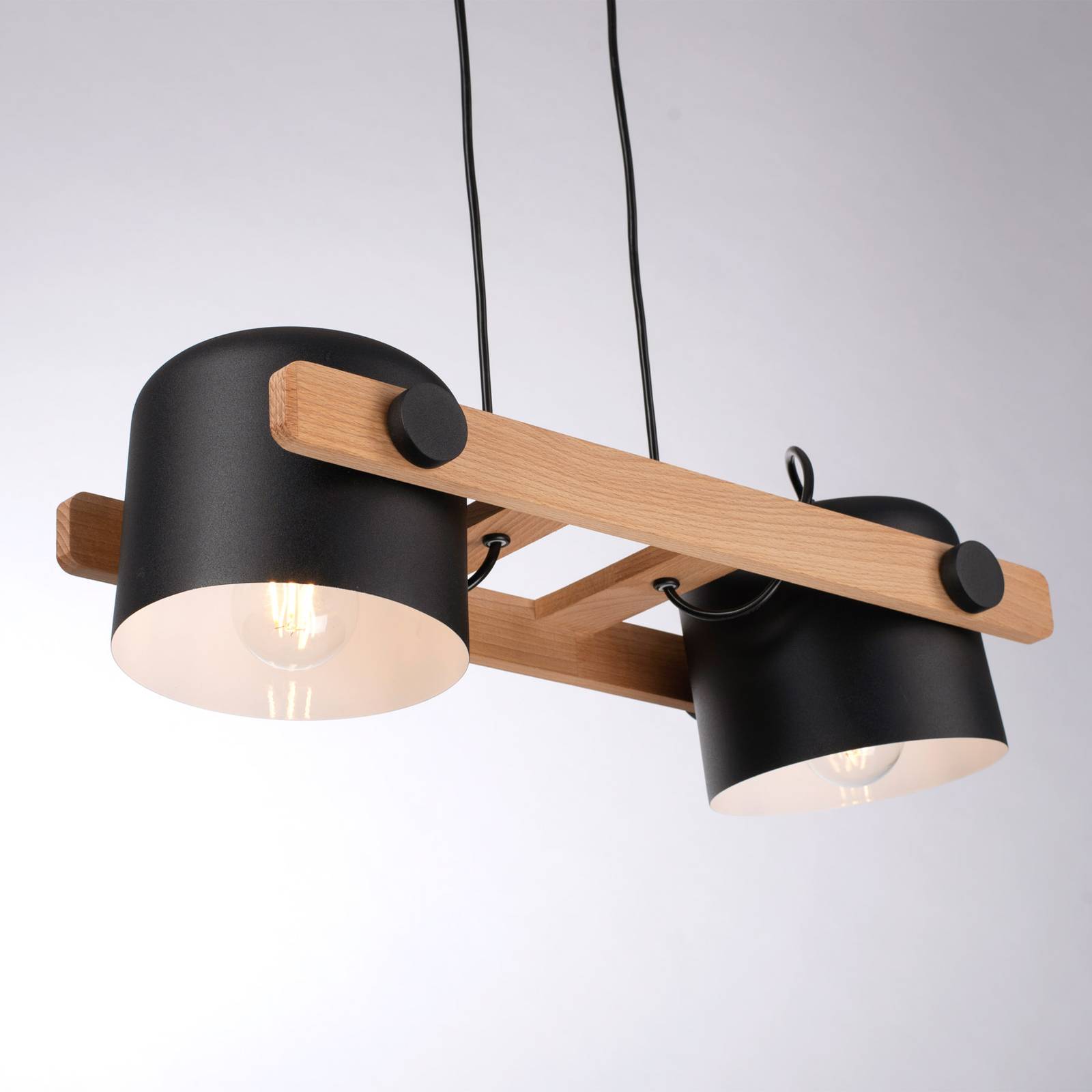 Leuchten Direkt Závěsné světlo Cup, dva zdroje, Obývací pokoj / jídelna, kov, dřevo, E27, 60W, P: 63 cm, L: 23 cm
