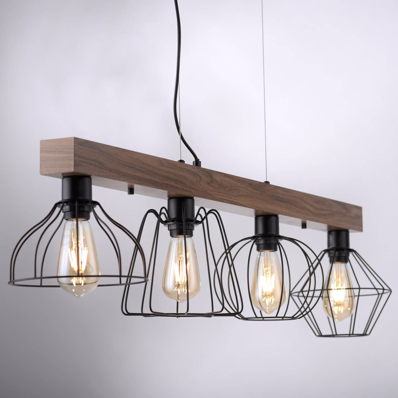 JUST LIGHT. Závěsné svítidlo Kaska, čtyři světla, Obývací pokoj / jídelna, Železo, dřevo, E27, 40W, P: 110 cm, L: 20.5 cm